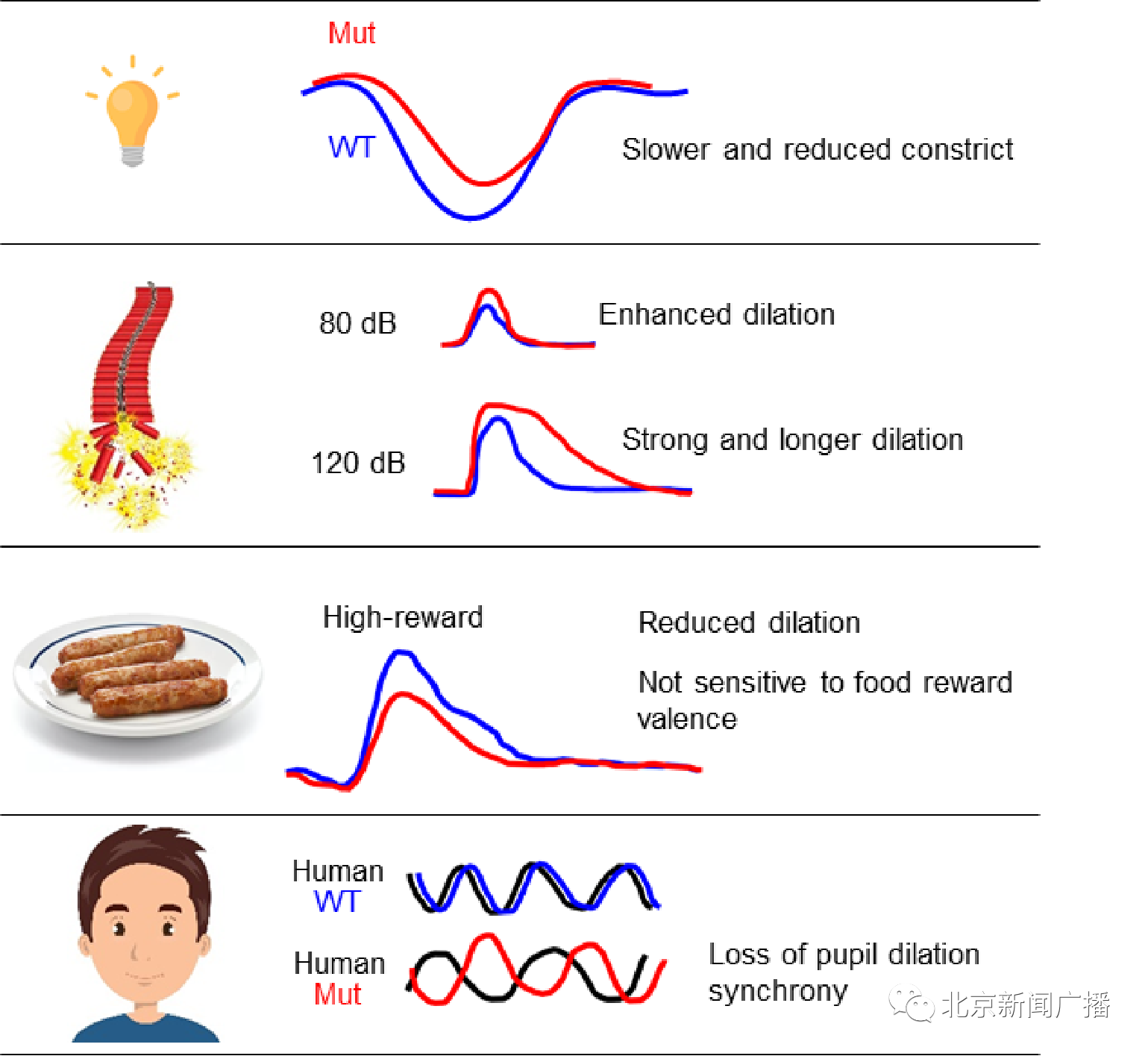 图3. 孤独症突变犬对社会与非社会刺激瞳孔反应异常。WT,野生型对照;Mut,突变体。