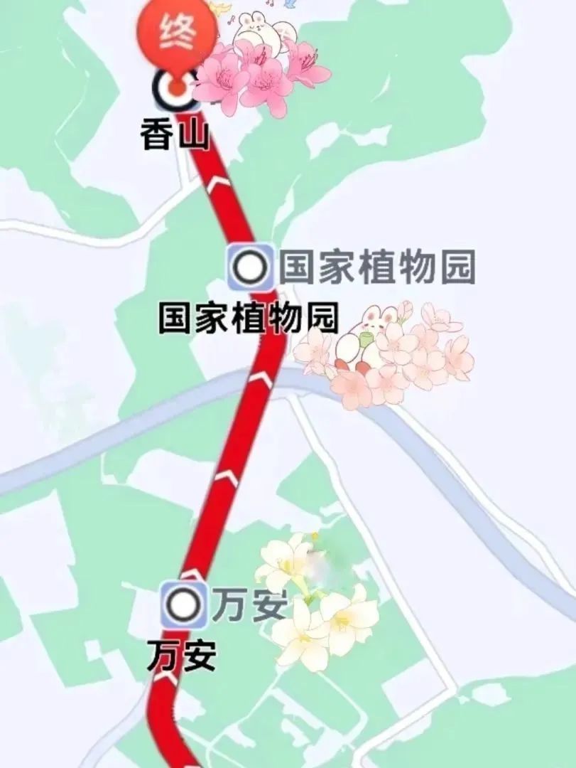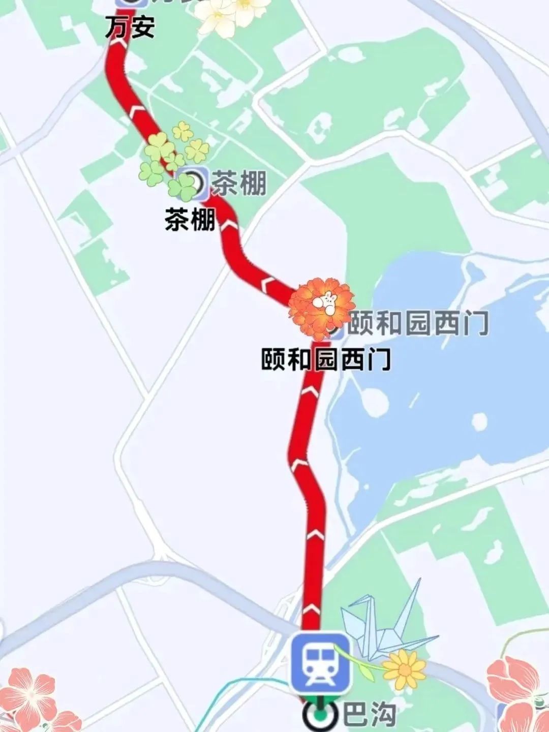 中间设颐和园西门站、万安站、植物园站