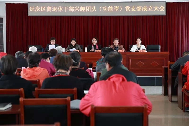 延庆区离退休干部兴趣团队(功能型)党支部成立大会在区委老干部局召开,延庆区委老干部局局长、组织部副部长郑玉伶、副局长韩金萍、张书菊、副调研员赵凤云及各兴趣团队老干部代表80余人参加成立大会。