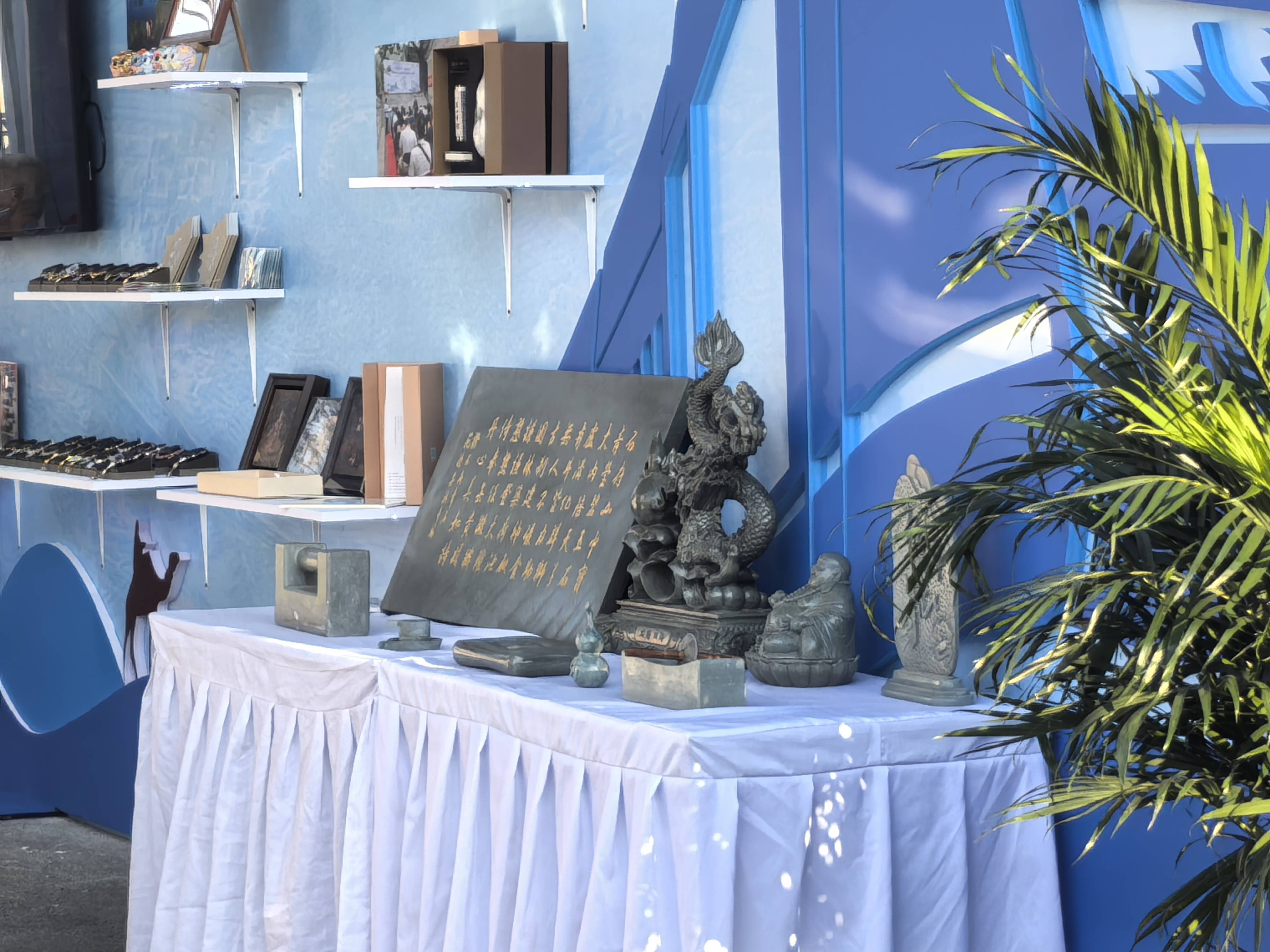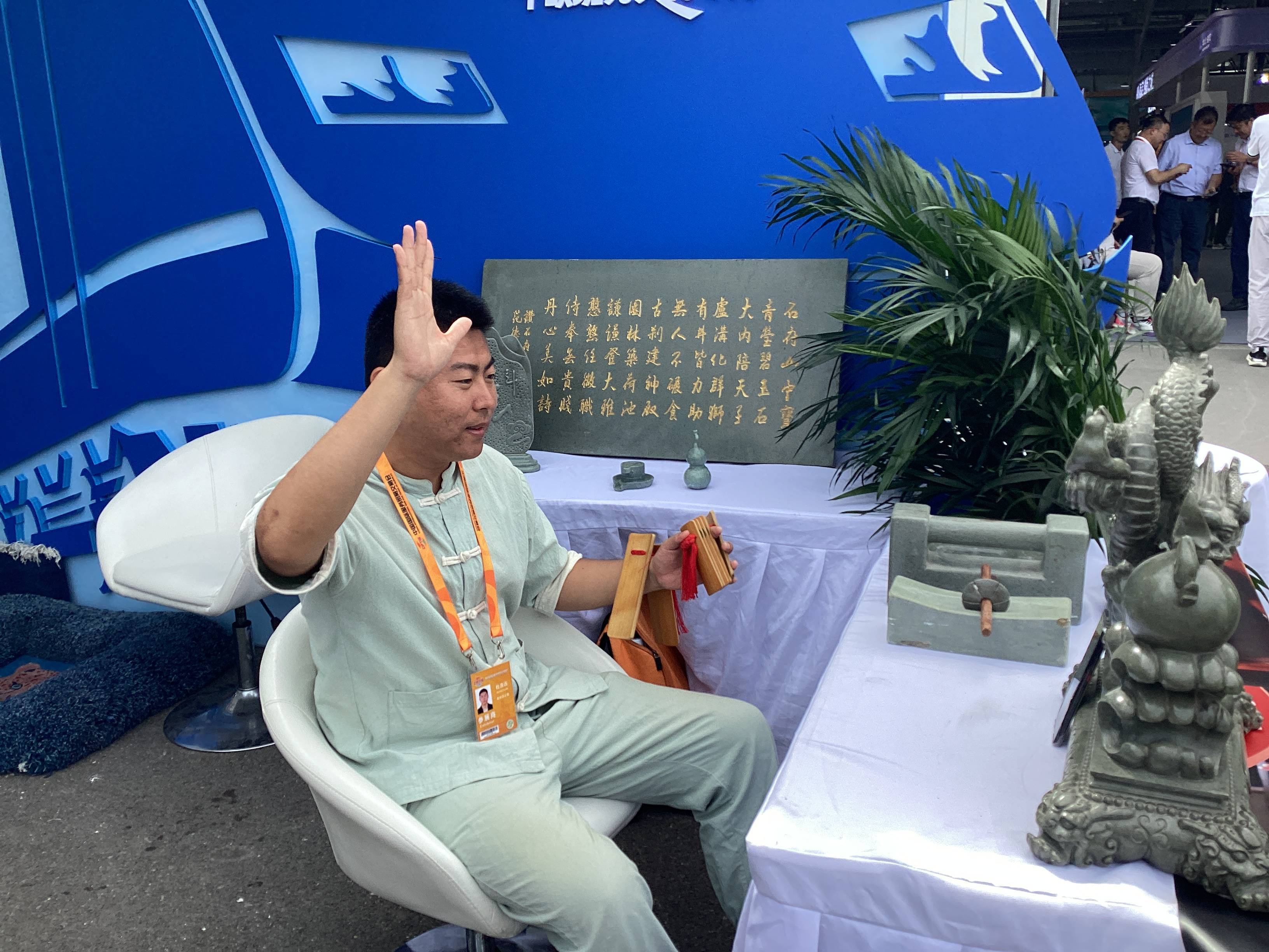 9月13日,在服贸会上,老街坊之家艺术活动中心的石刻传承人与金顶街磨石书场的袁派评书传人一同精彩亮相。