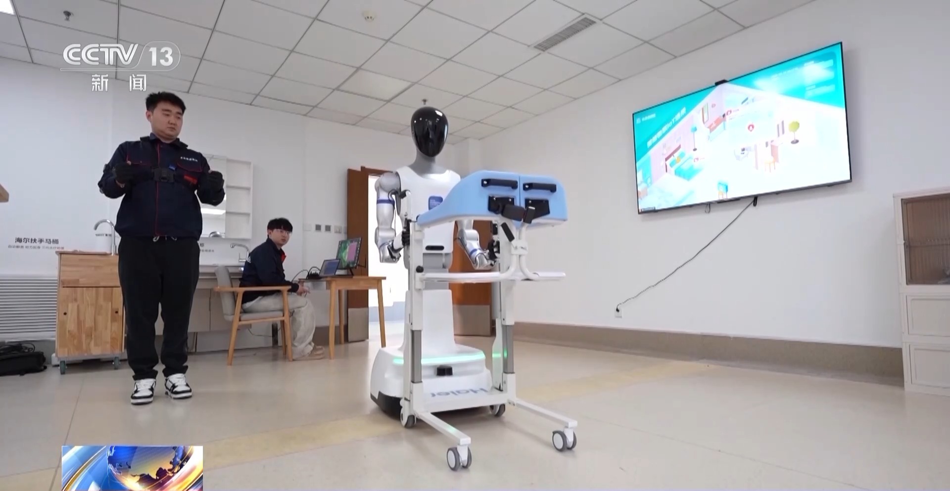 在山东青岛一家专注于康养领域的训练验证中心,各类为老年人等有需要群体提供高度智能化服务的具身机器人以及智能设备,它们在真实的场景当中模拟测试应用,技术成熟稳定后,就可以直接服务于有需求的人群。