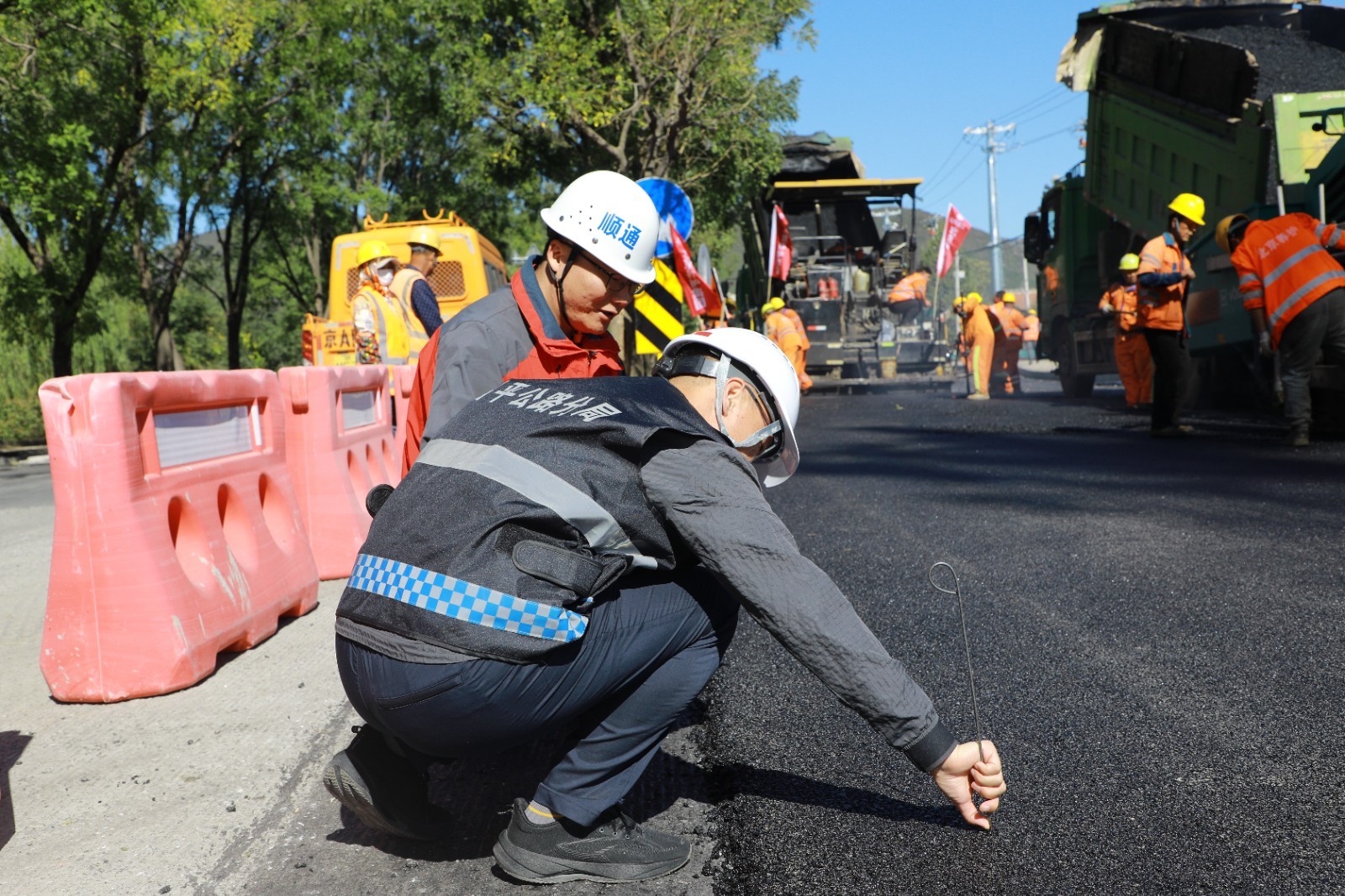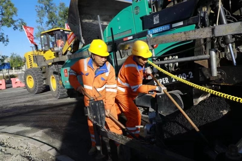 在秦北路施工现场,工人正在紧张忙碌开展沥青路面浇筑作业。北京建工养护集团九公路处项目负责人邱博文表示“为最大限度减少对市民出行影响,在施工期间采用‘半幅施工、半幅放行’的模式,全程不断路,利用道路拓宽部分对来往车辆分流导行。在此也提示广大市民朋友,途径此路段请注意导行提示,感谢您的理解与支持。”