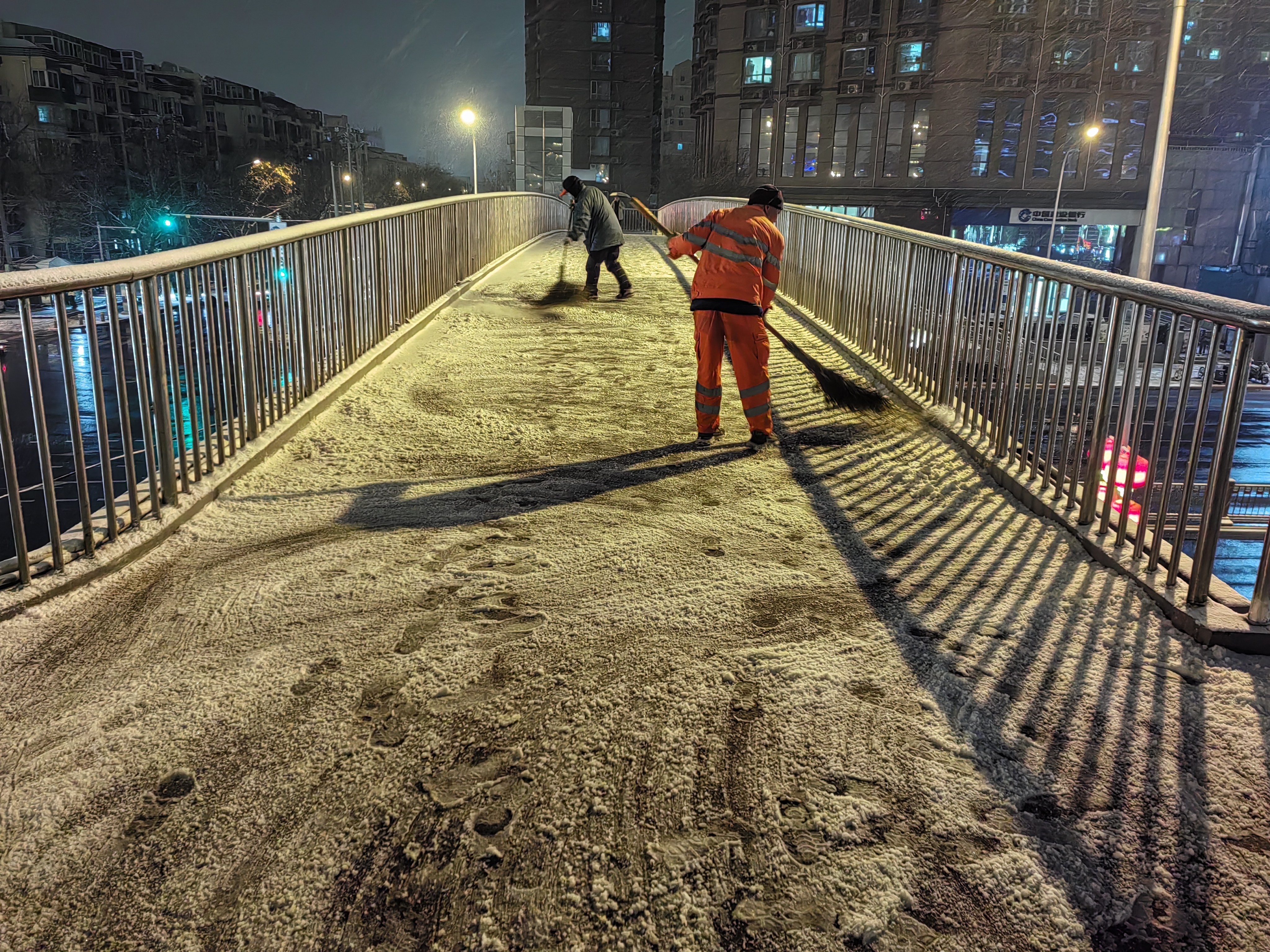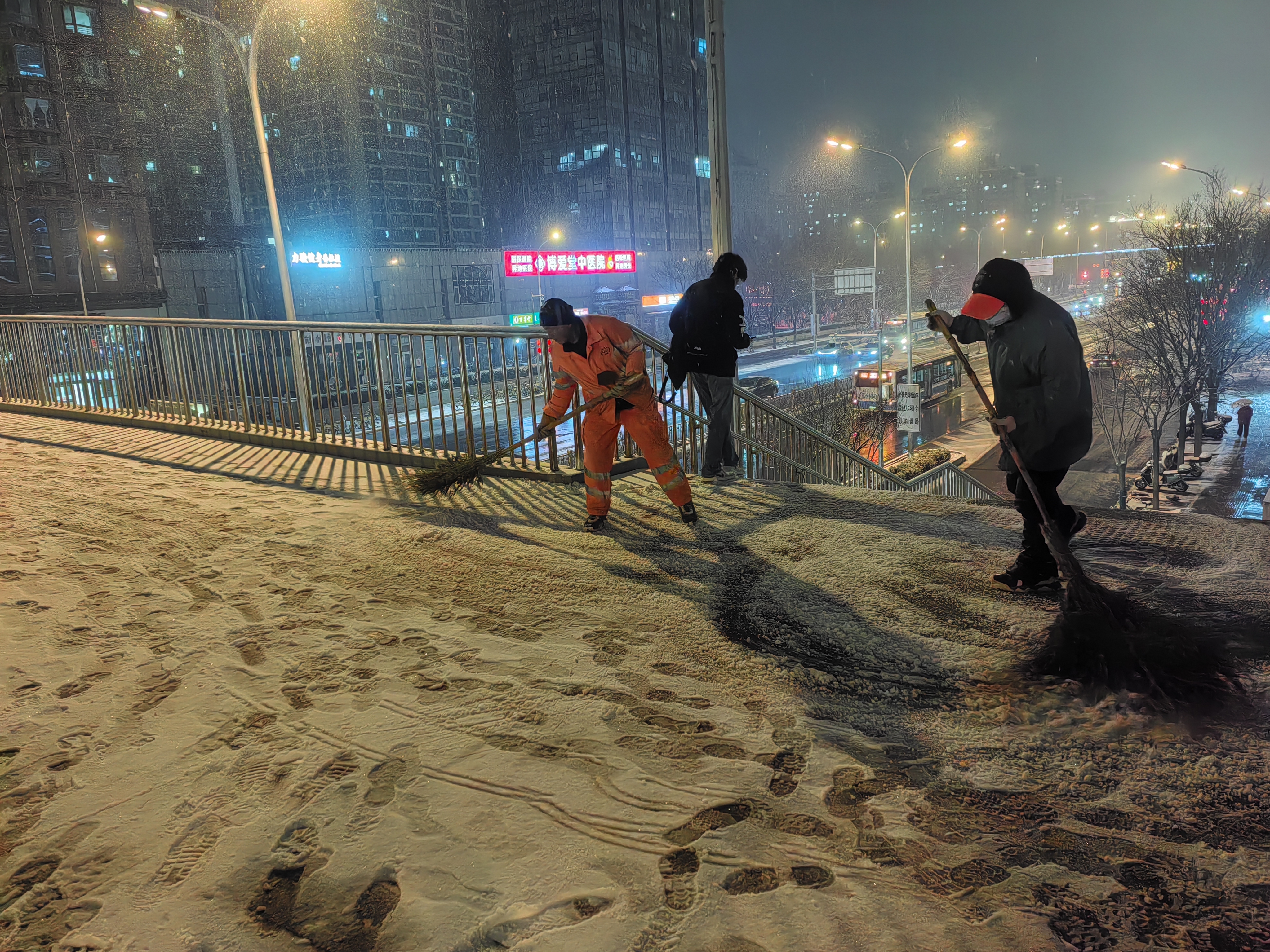 此次降雪正值冬春交替时节,且对4日晚高峰和5日早高峰造成了一定影响。此前,丰台区气象台已发布道路结冰黄色预警信号,提示相关部门和市民注意防范。全区各部门反应迅速,作业人员在重点路段、桥区、出入口等地连续奋战,通过机械除雪与人工清扫相结合的方式,最大程度减少了雨雪天气对城市运行和市民生活的影响。