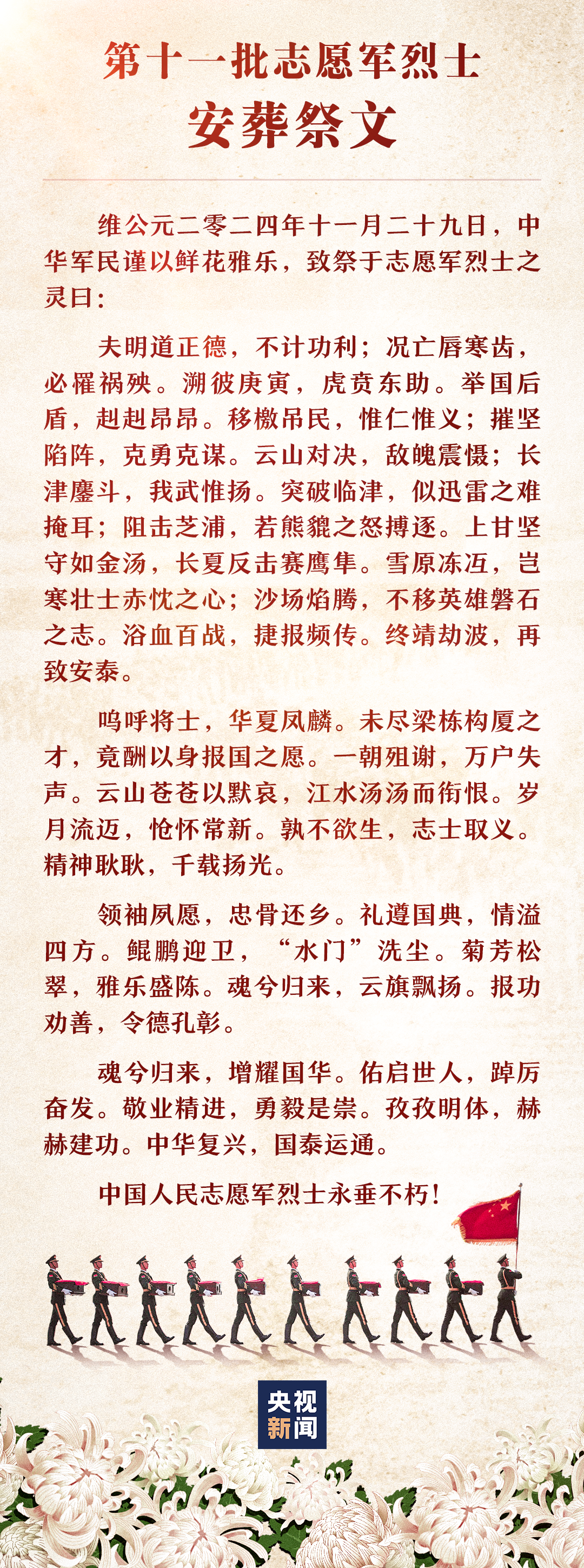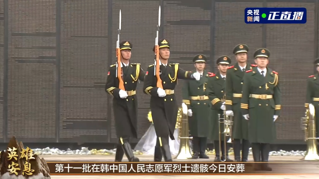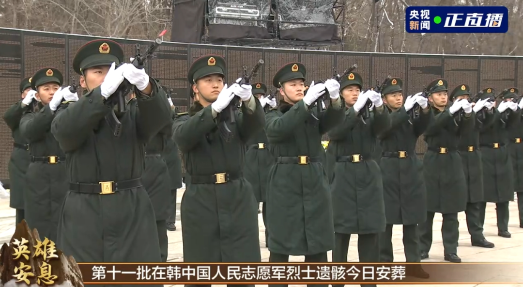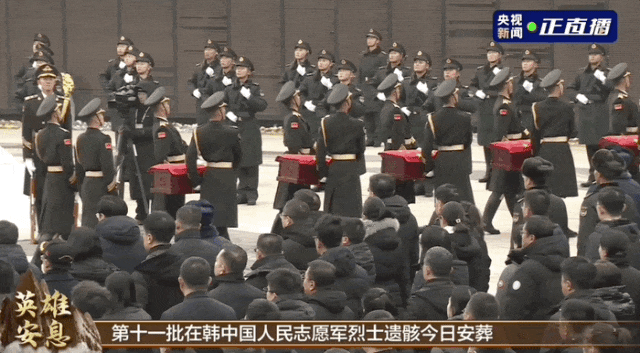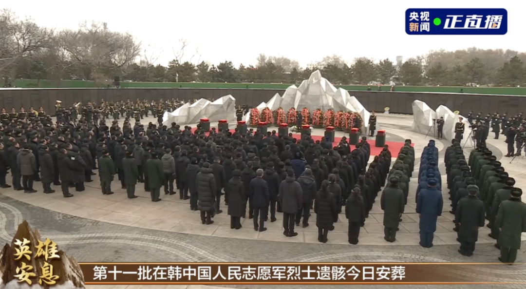 今天(11月29日)上午,第十一批在韩中国人民志愿军烈士遗骸安葬仪式在沈阳抗美援朝烈士陵园举行