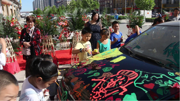 当天上午8点半,燕郊小央美美术的小会员们齐聚校区,共同庆祝开业典礼。一群天真烂漫的孩子聚在一起,汇成欢乐的海洋,引得路人纷纷侧目。活动进行第一场就是汽车涂鸦环节。小央美美术的韩校长为了让孩子们能够释放天性,将自己的汽车贡献出来让孩子们尽情涂鸦,场面热闹非凡。