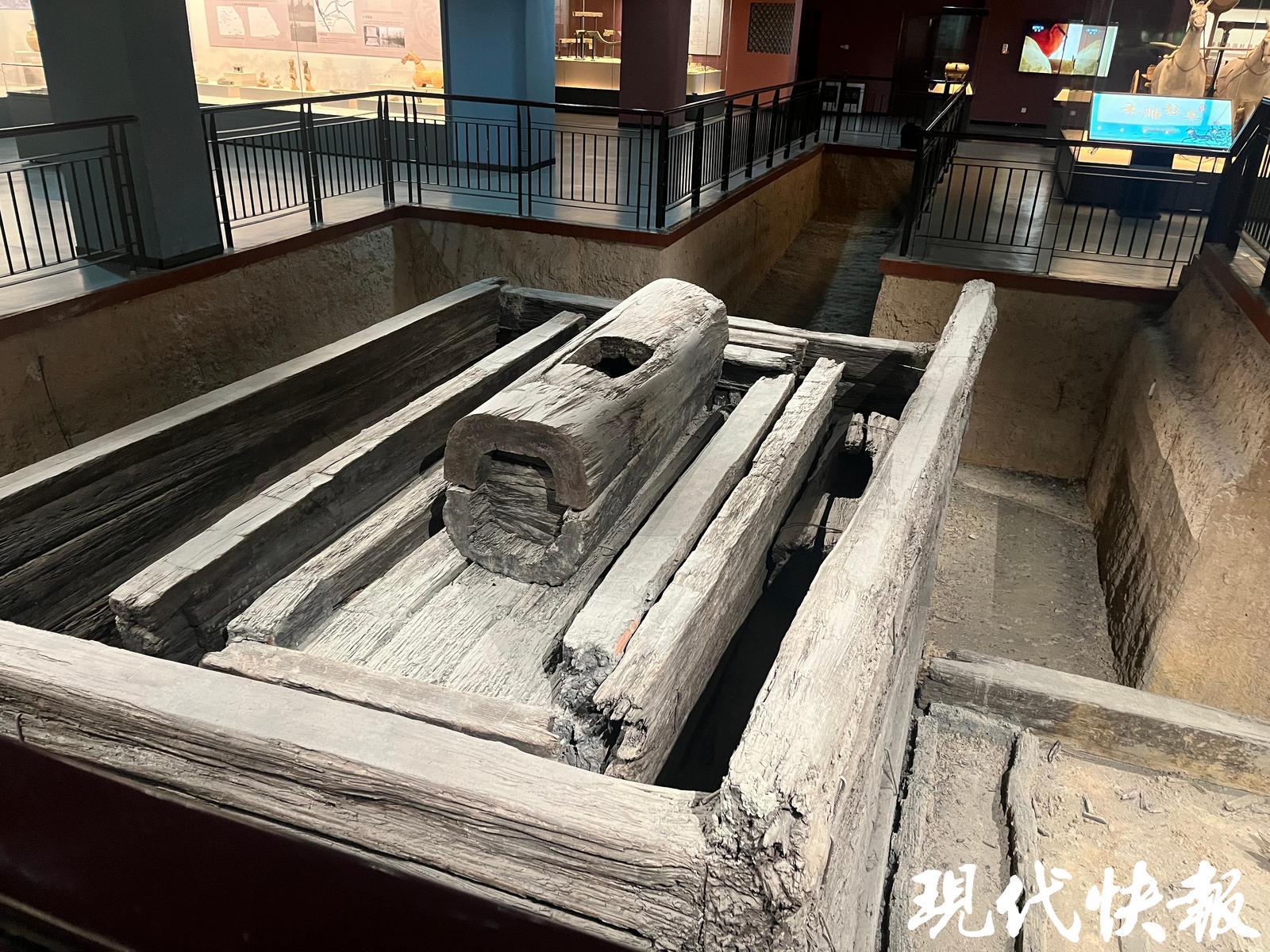 近日,记者来到了国家一级博物馆——淮安市博物馆,揭开历史迷雾,到底是什么原因让战国马车保存得如此完好?淮安市博物馆社服部副主任程浩告诉记者,2004年,位于大运河北岸的清浦区运河村发掘出一座呈L形的战国时期高级贵族墓,墓主人的主棺由一整根金丝楠木从中间劈开掏空制成。他介绍:“淮安当地不产楠木,当时的木料借用了淮安水运优势从远方运来。”