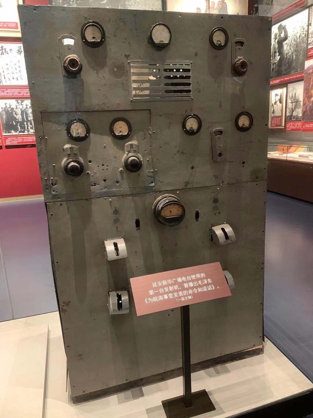 延安新华广播电台使用的第一台发射机,曾播出毛泽东《为皖南事变发表的命令和谈话》。