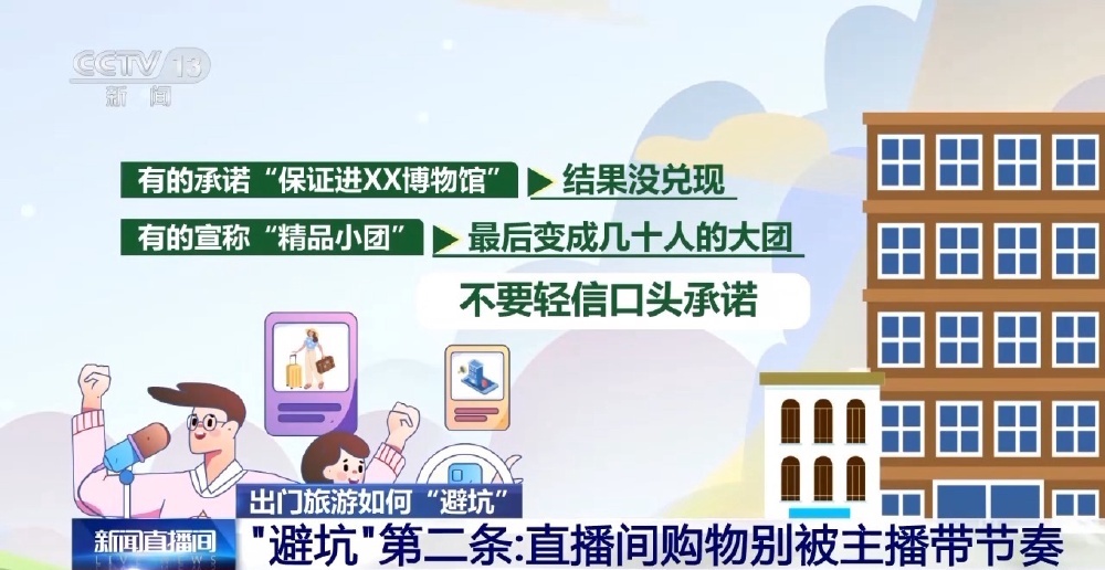 直播间旅游产品,虚假宣传、价格欺诈、资质造假是三大常见问题。有的承诺“保证进XX博物馆”,结果没兑现;有的宣称“精品小团”,最后变成几十人的大团;不要轻信口头承诺。购买前查清资质,看清合同,拒绝签正规合同的坚决不买。