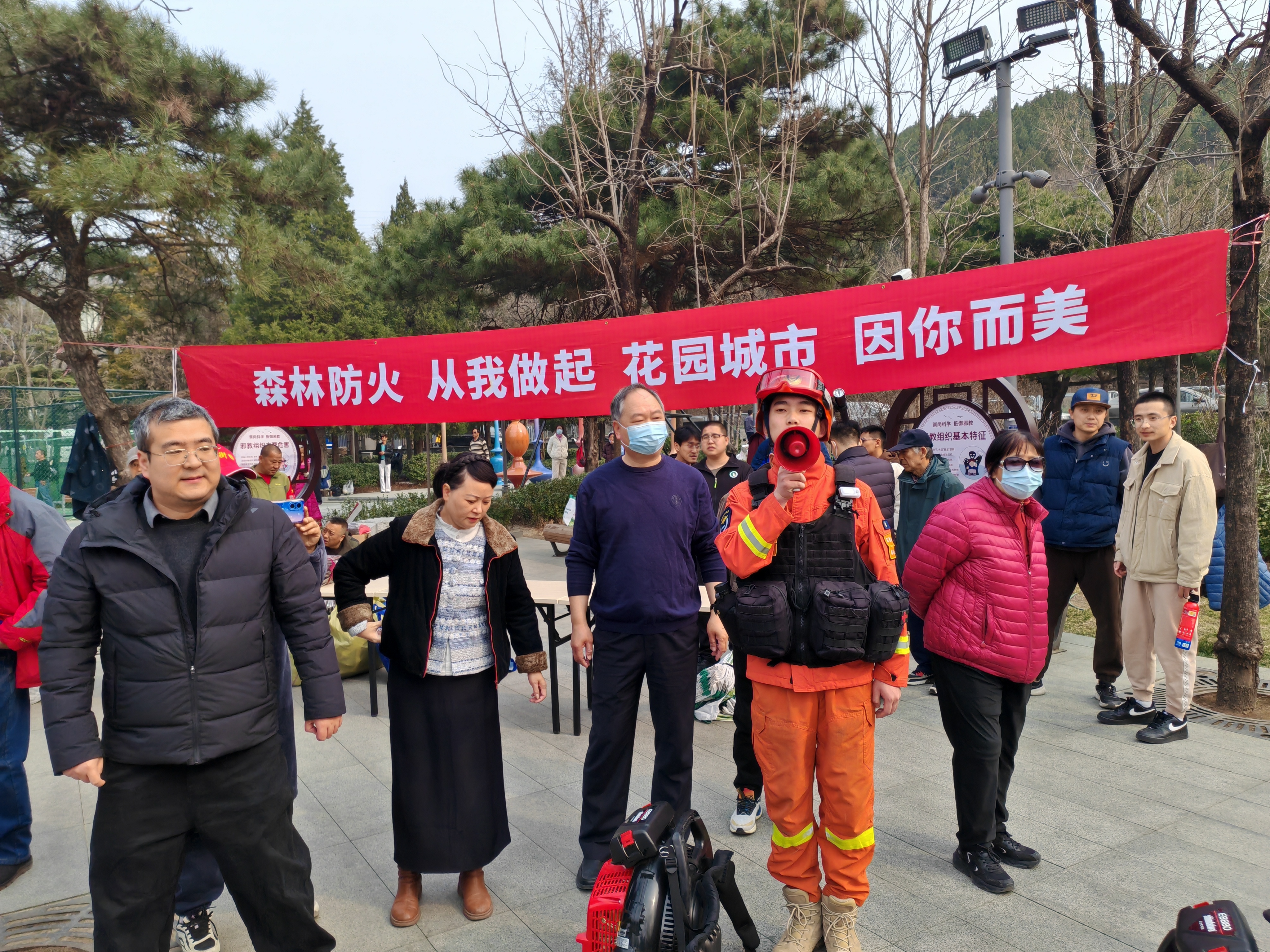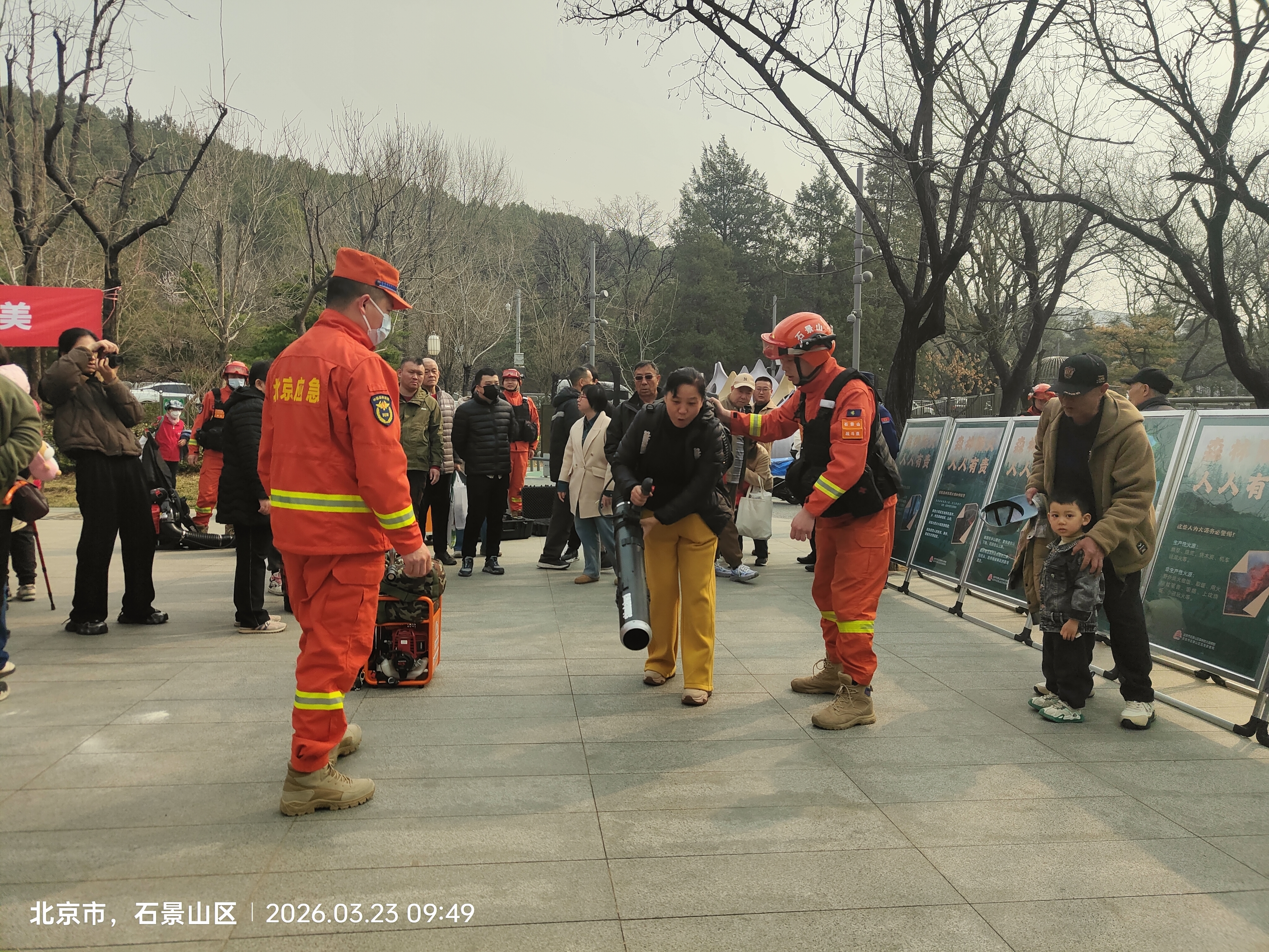 现场,石景山区应急局工作人员讲解森林火灾成因、蔓延规律、预警机制及应急处置流程,让居民直观认识森林火灾危害。