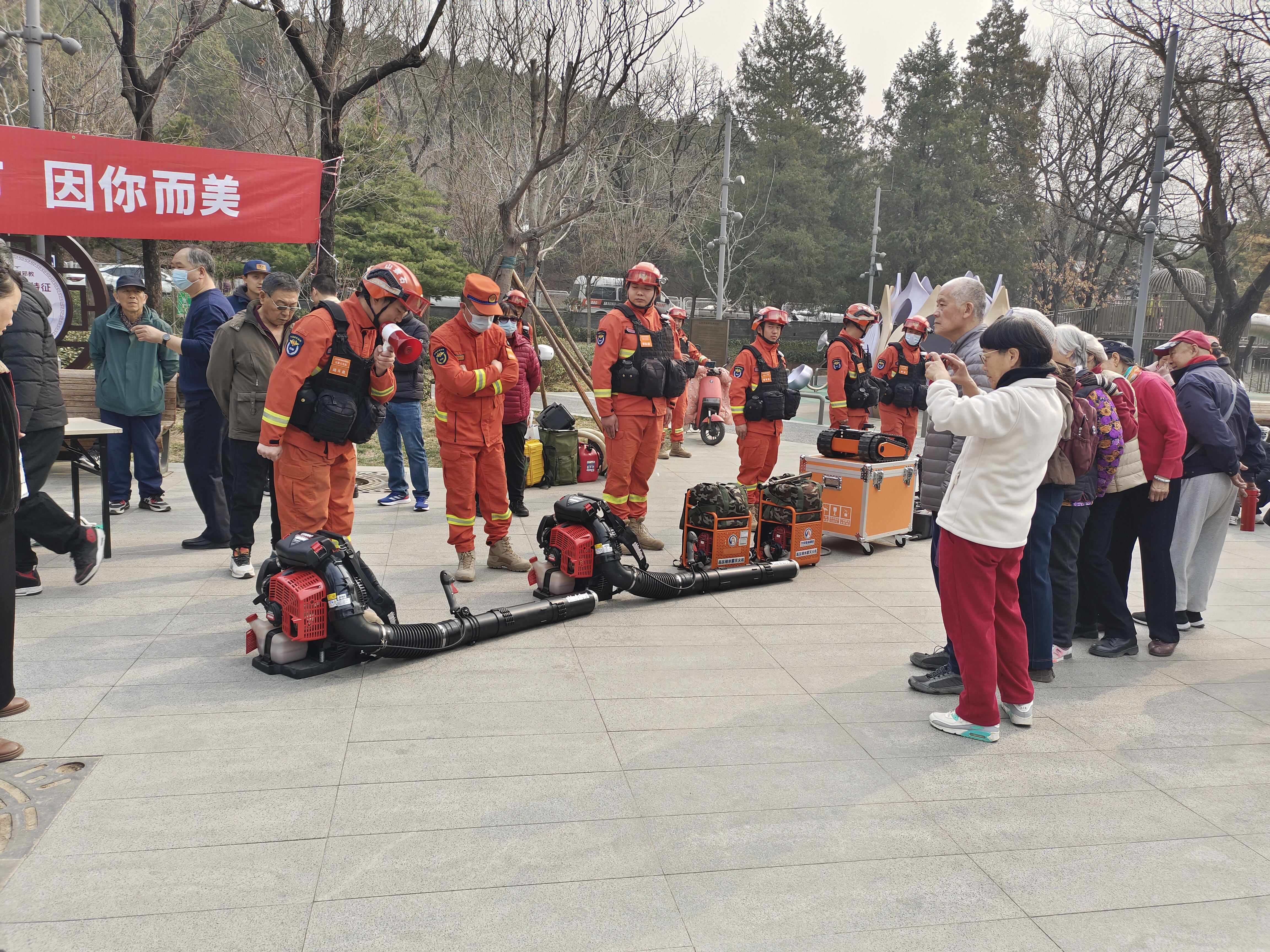 3月23日,石景山区金顶街街道联合区应急局、园林局、区消防救援支队、公园管理中心及西山林场等单位,在模式口公园开展森林防灭火宣传暨初期火灾扑救培训演练活动,辖区有林社区应急队伍参与,以实战化举措守护辖区居民生命财产安全。本次演练针对性、实操性极强。
