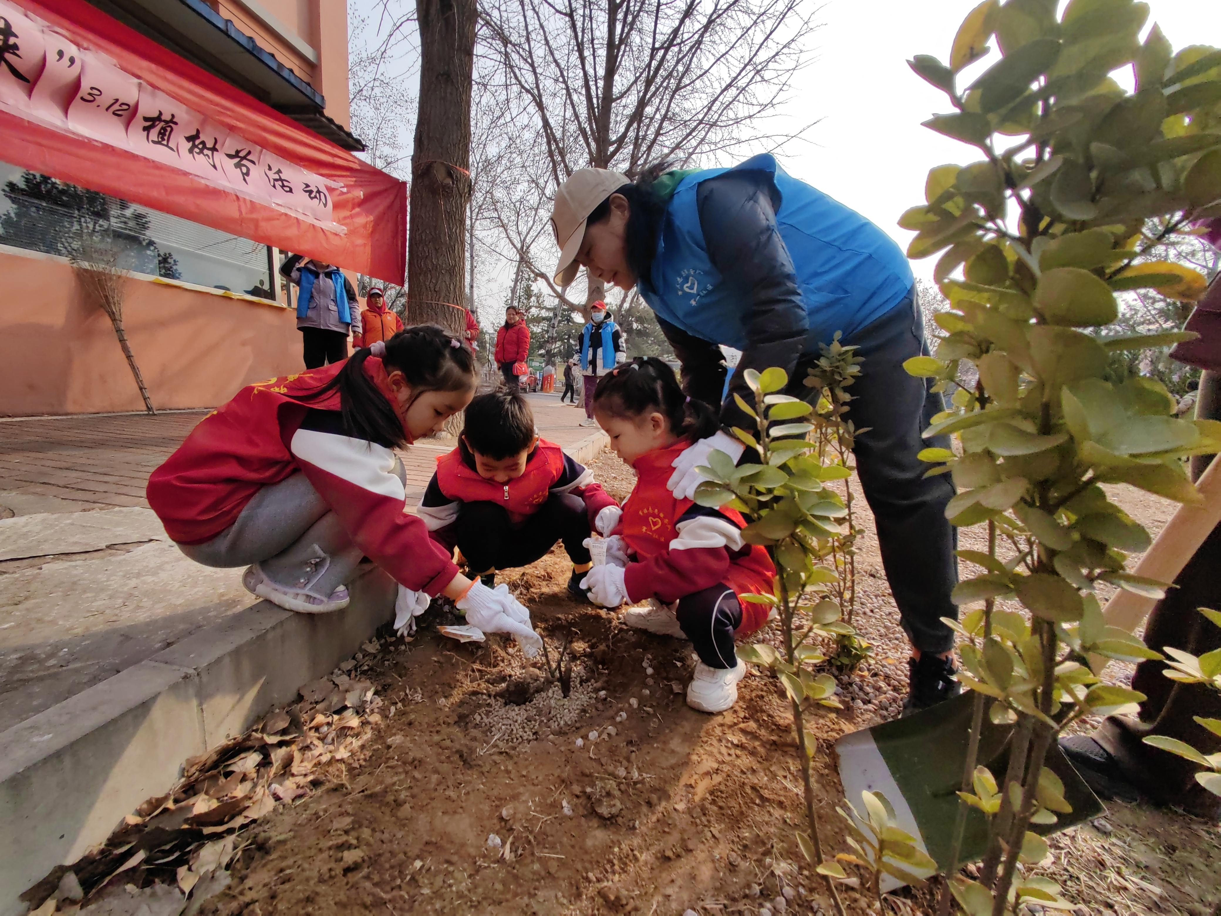 阳光下,一株株新栽种的树苗迎风挺立,嫩绿的枝芽充满生机与活力,原本空旷的土地被装点得绿意盎然。此次植树活动,既是一次美化环境、践行绿色低碳理念的实践行动,更是一堂融合志愿服务、劳动教育的生动课堂,既为社区增添了绿色美景,也让孩子们像小树苗一样在实践中得到成长。