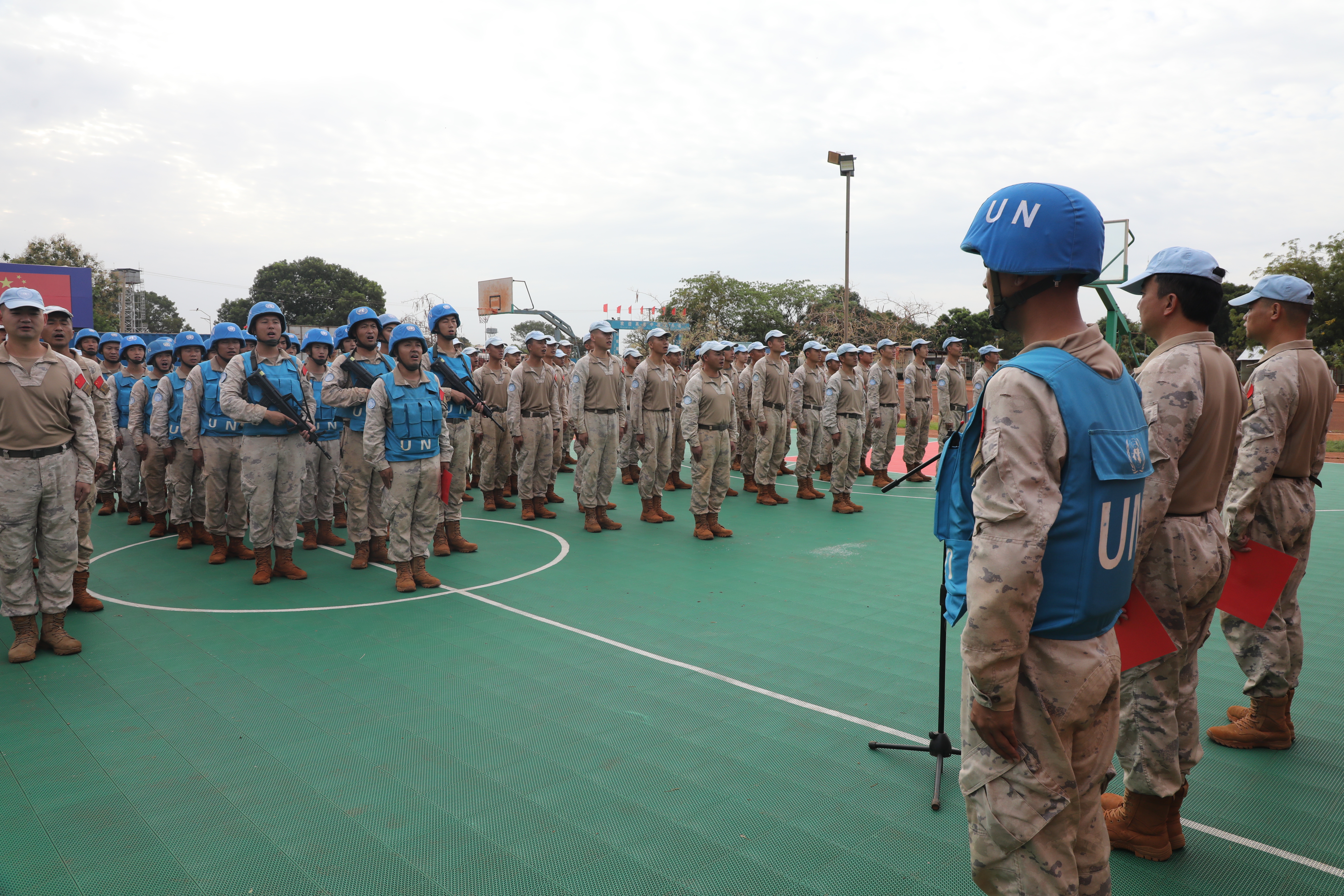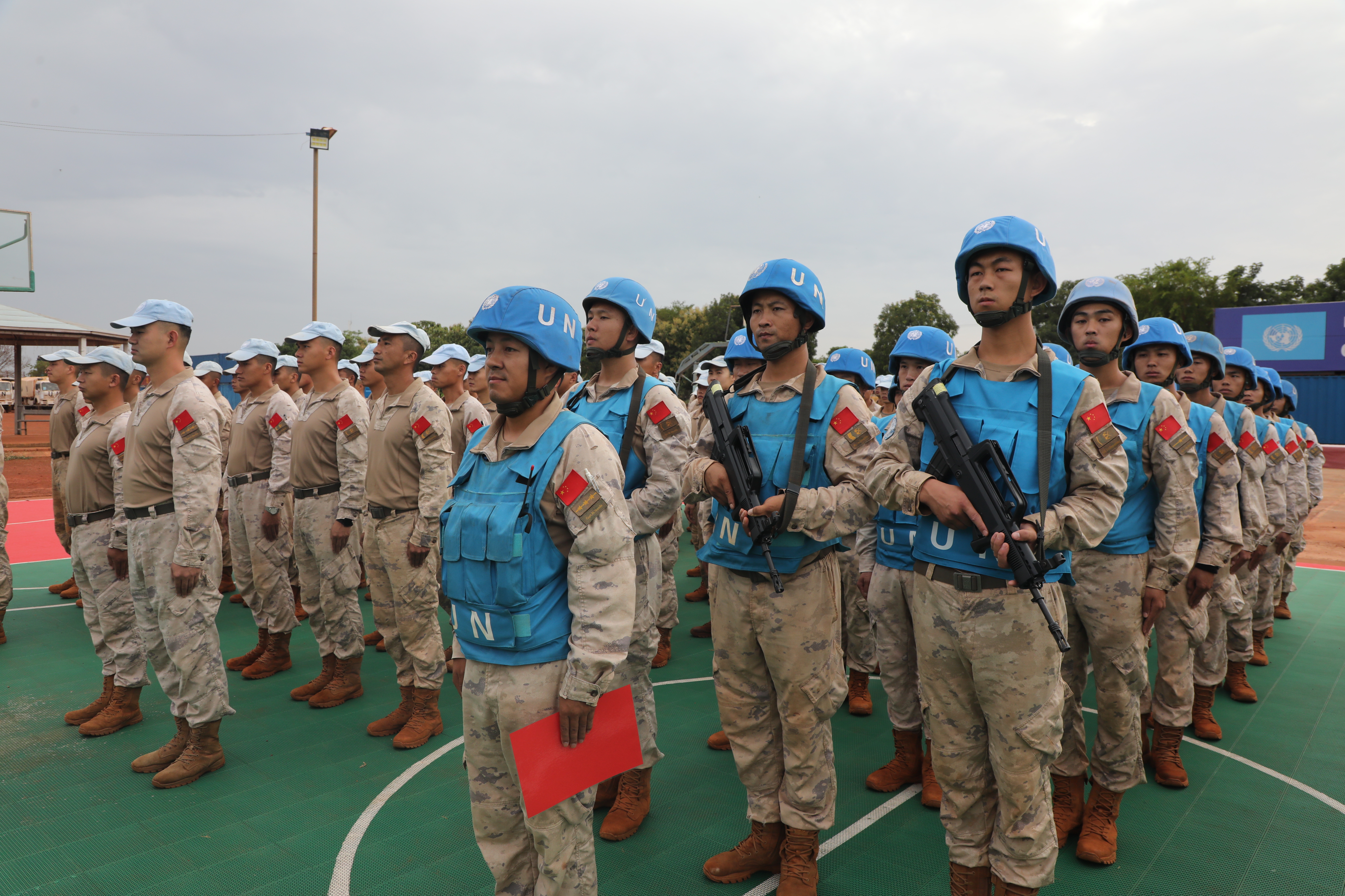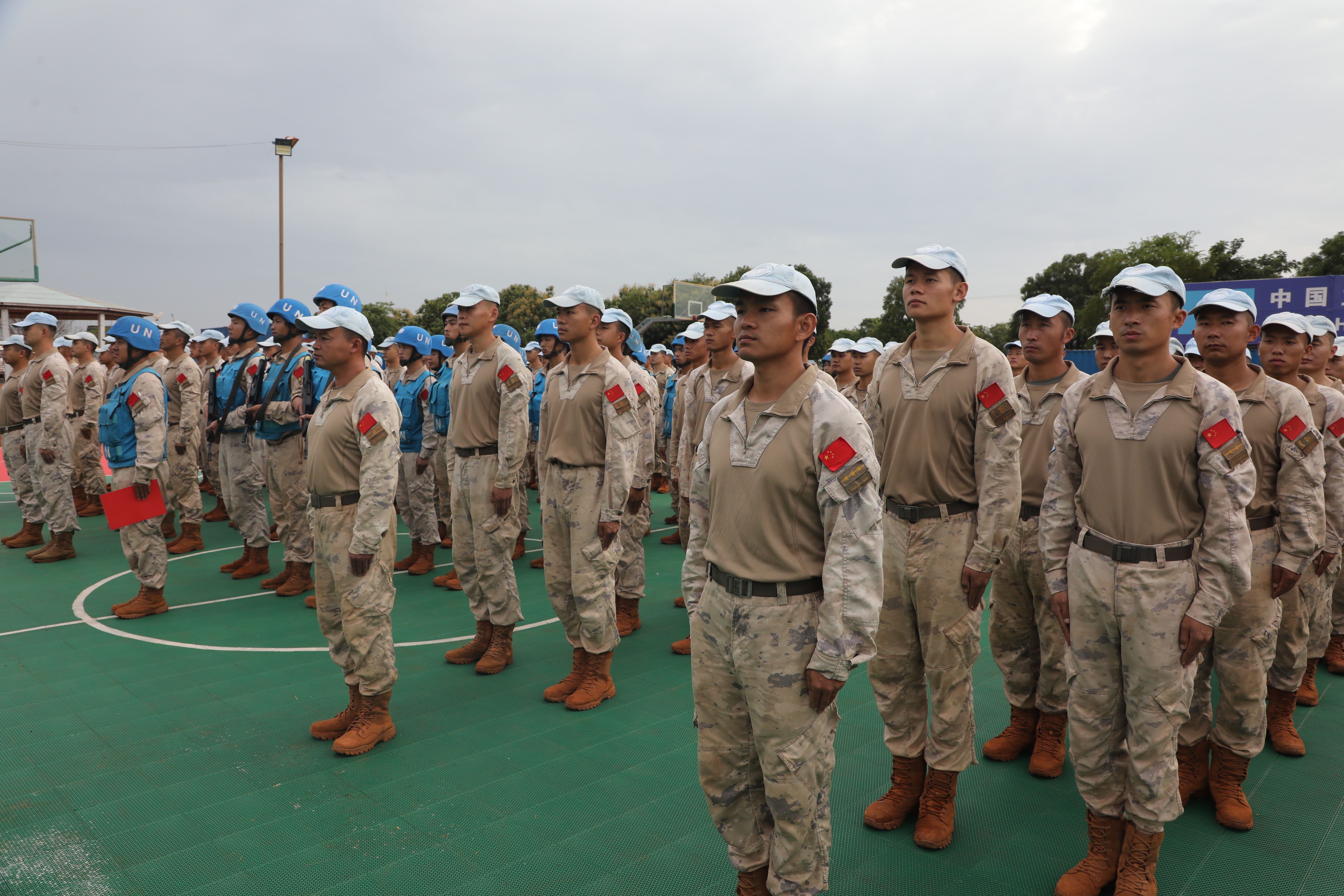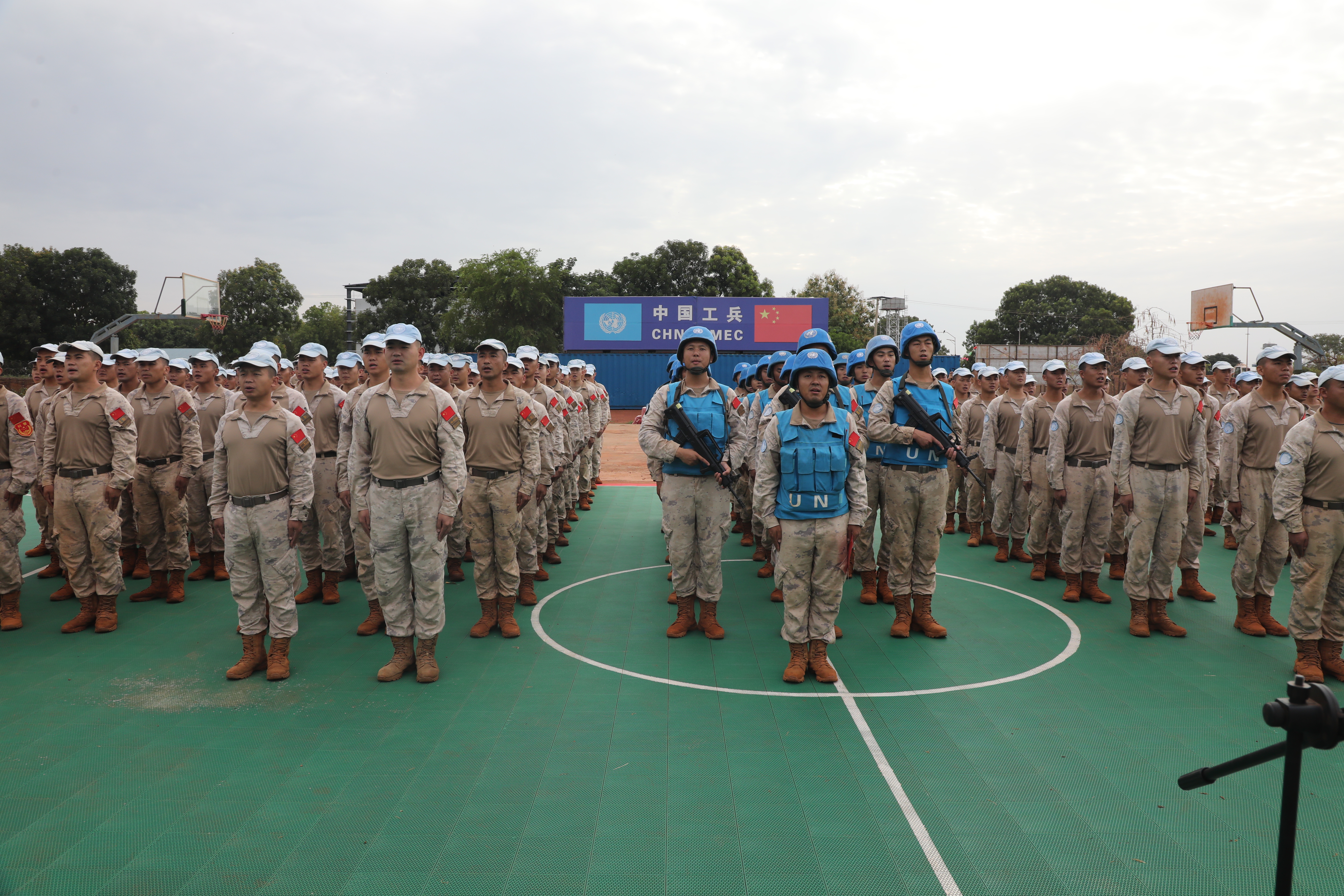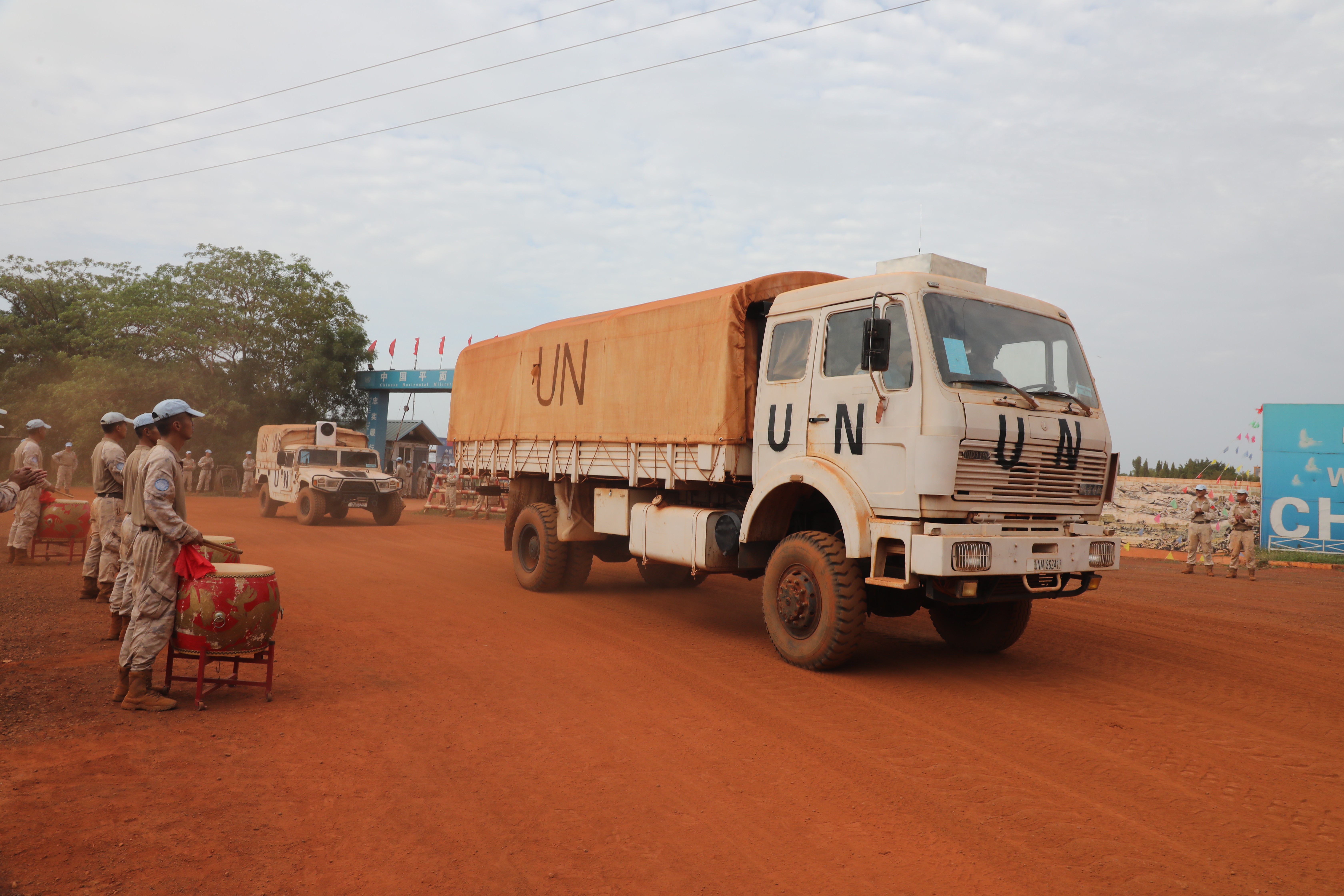 当地时间6月3日,中国第15批赴南苏丹(瓦乌)维和工兵分队25名官兵奔赴阿维尔基地进行部署,主要担负修建机场跑道、避难所、弹药库和硬化场地、挖设排水系统等相关工程保障任务。