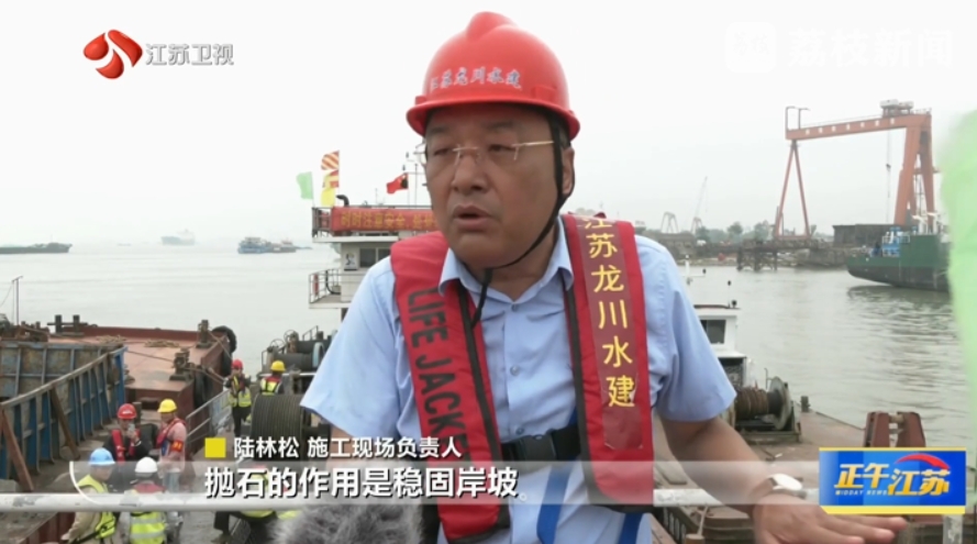 施工现场负责人陆林松说,抛石的作用是稳固岸坡,这种工艺会对整个岸坡形成整体的保护层,就像瓷砖一块块贴上去,有效防止了江水对岸坡的冲刷。据了解,该工程总投资超4.6亿元,总抛石方量近114万立方米,主要对扬州江都区嘶马弯道6.71公里护岸进行加固。
