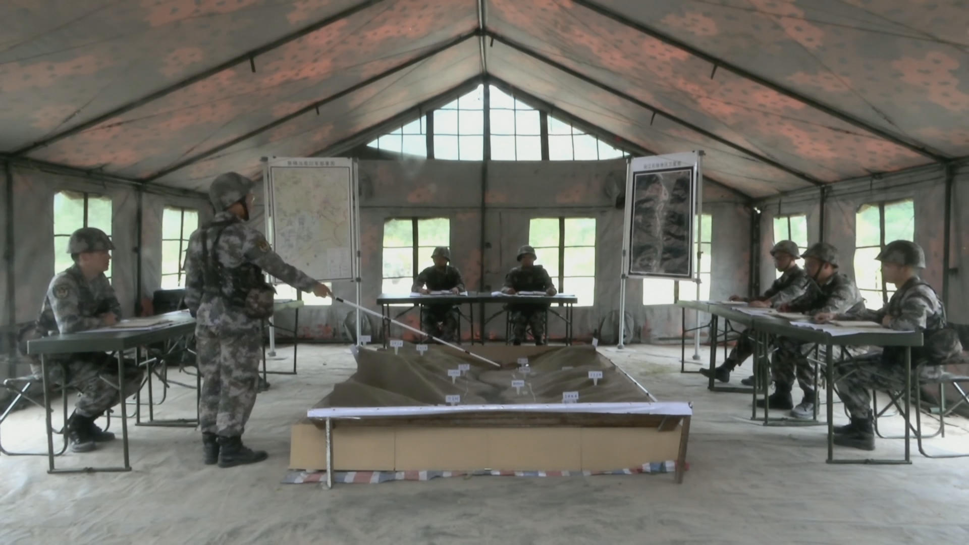 演练以原有桥梁遭敌损毁,友邻部队无法渡江为背景展开,上午9:00,演练开始,官兵们按照上级下发的导调文书向指定地点机动,并迅速展开指挥所开设、渡场侦察、工事构筑等作业。根据侦察情况,该分队召开作战会议,分析研判情况,并迅速选定渡河地点制定渡河方案。