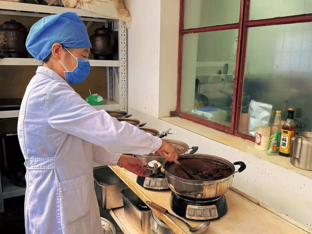 药剂科主任中药师刘建华正和几位药师一起熬制中药,她边搅动着翻滚的药汁,边告诉小编,手工熬制,其精髓在于“慢工出细活”,依靠时间、耐心和经验来成就品质。