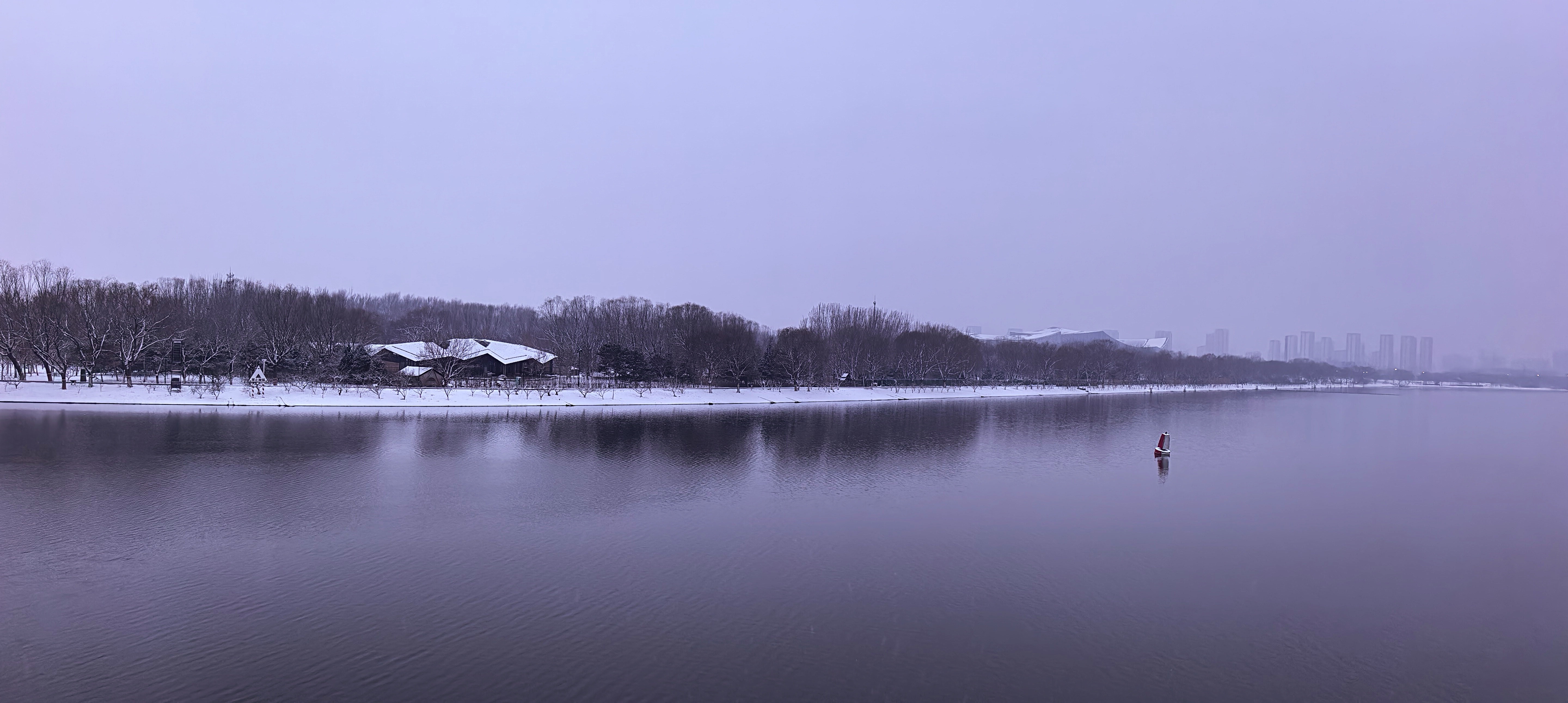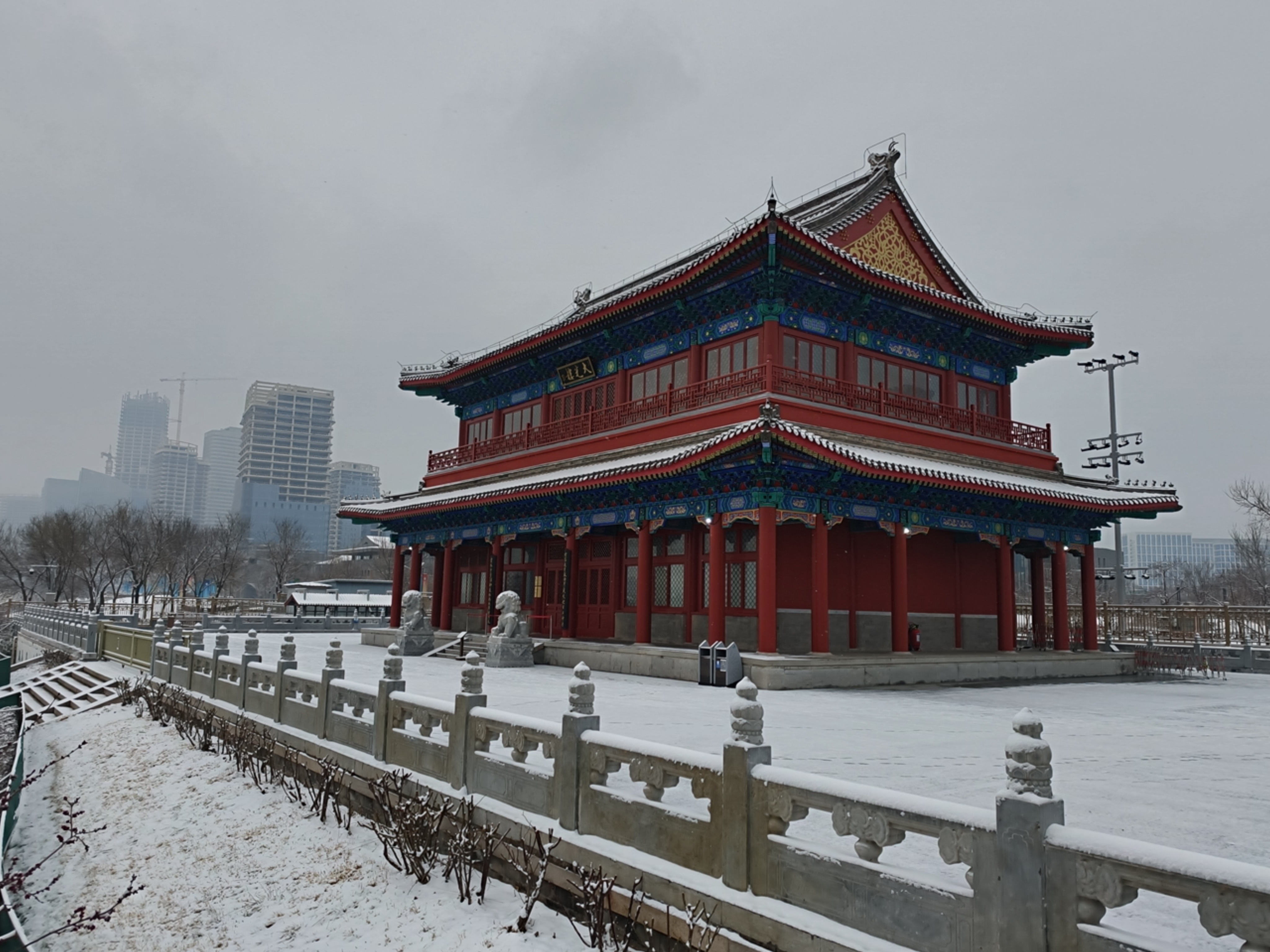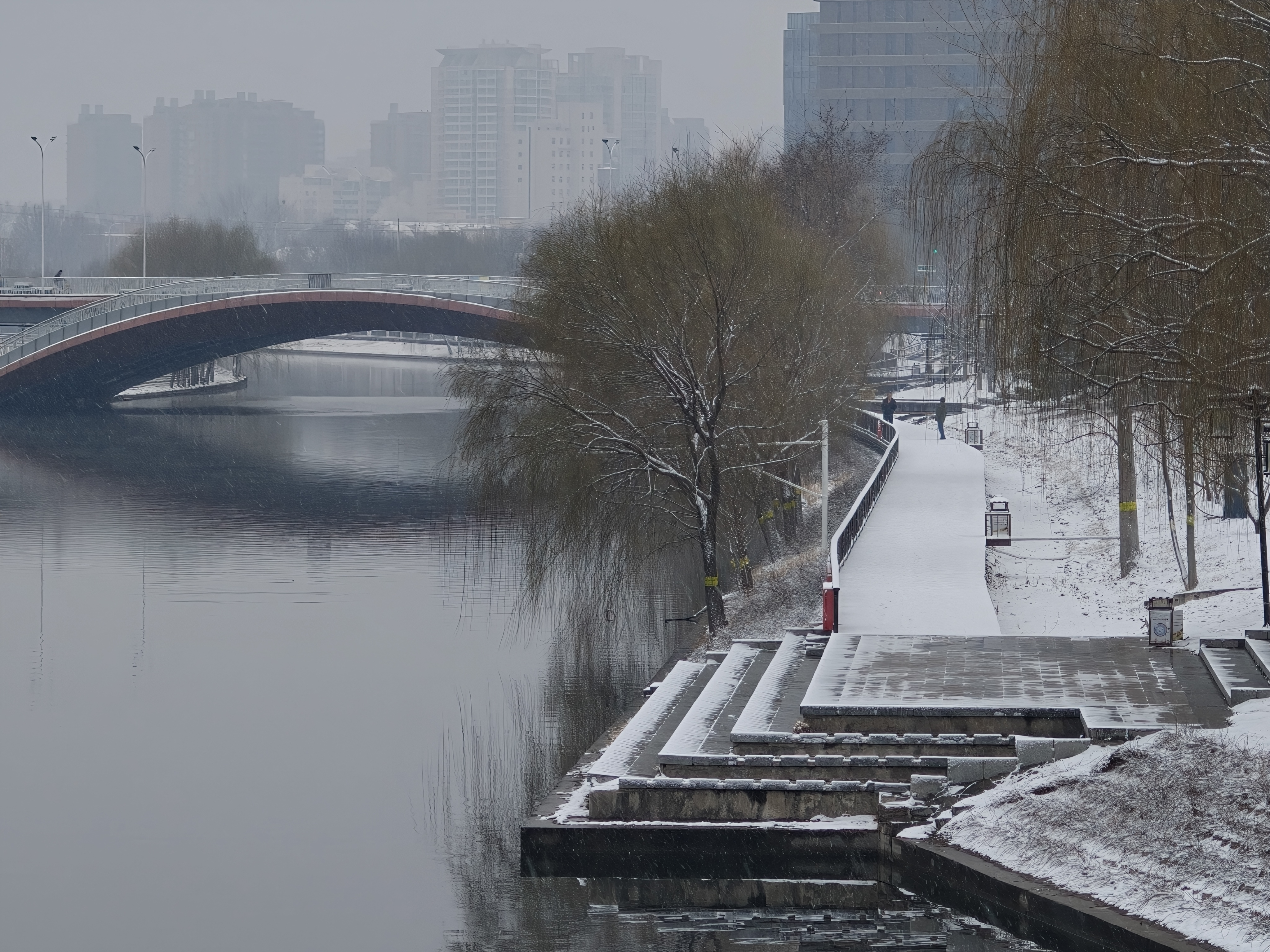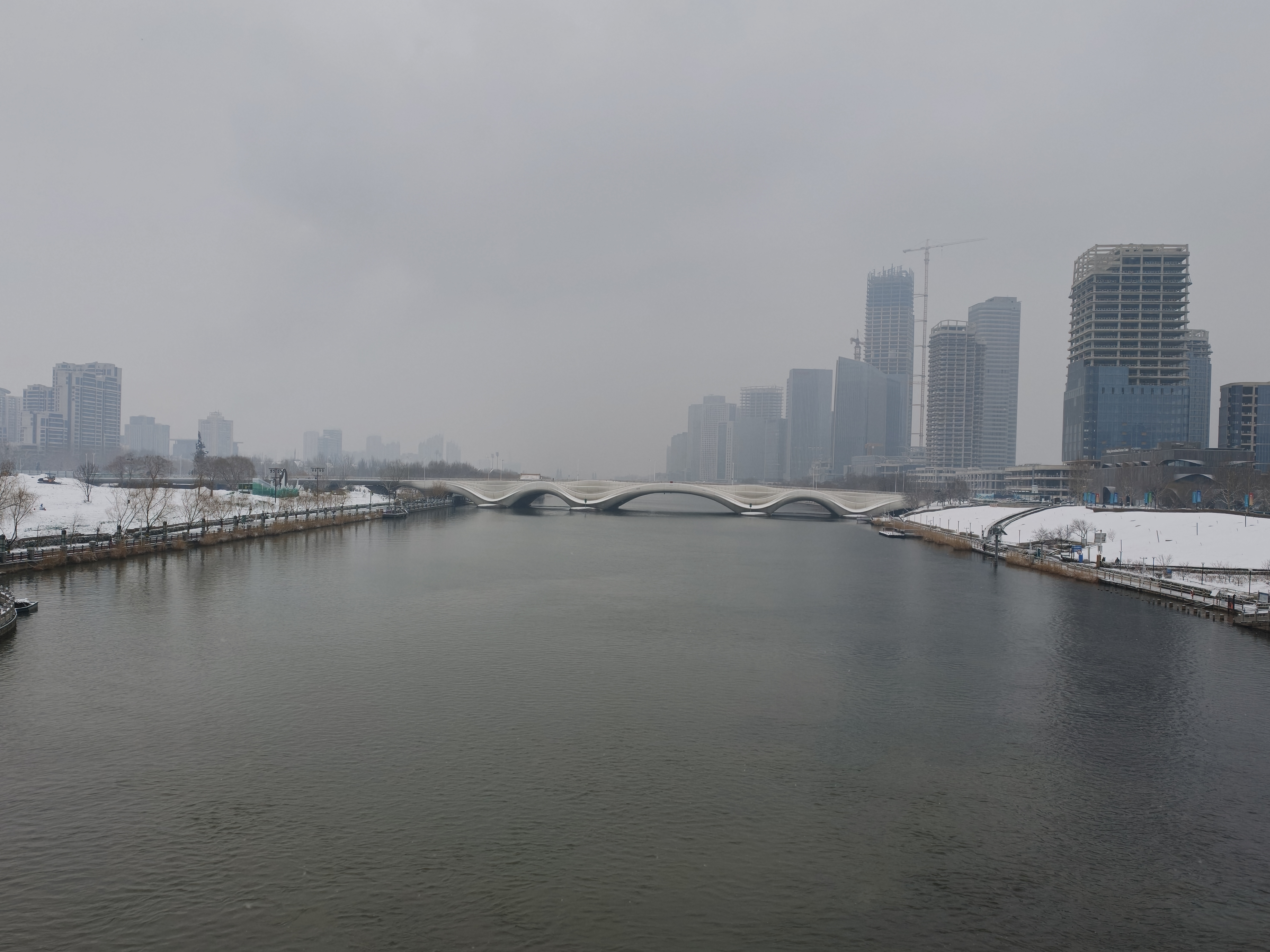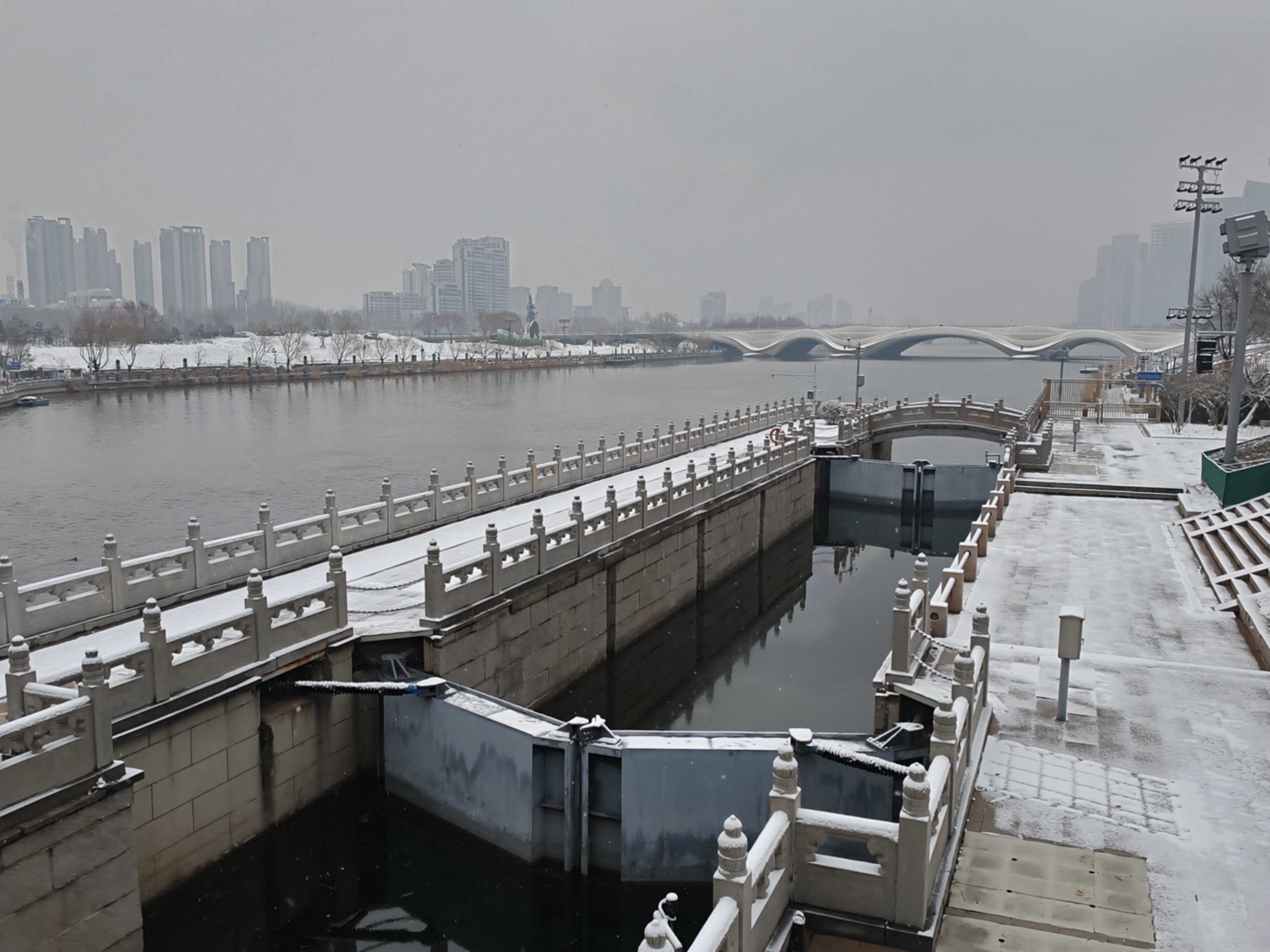 今天早晨,众多市民游客来到颐和园、景山公园、通州大运河畔等地赏雪景。