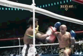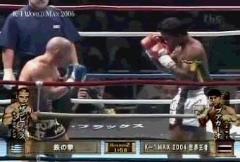 2005年,正值巅峰时期的“泰拳王子”播求,在K-1遭遇了希腊搏击传奇人物,有“雅典娜守护神”之称的迈克扎姆比迪斯
