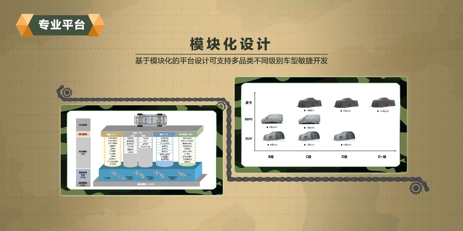 作为长城汽车向全球化科技出行公司转型的战略之作,坦克平台既是长城汽车厚积薄发,由大到强的必然结果,也是长城汽车战略转型的重要举措之一。坦克平台坐拥全球化、智能化、模块化、高可靠性、高灵活性五大特征,具备同级别最优的强悍动力组合、极致的越野能力和智能的越野方式三大核心优势。