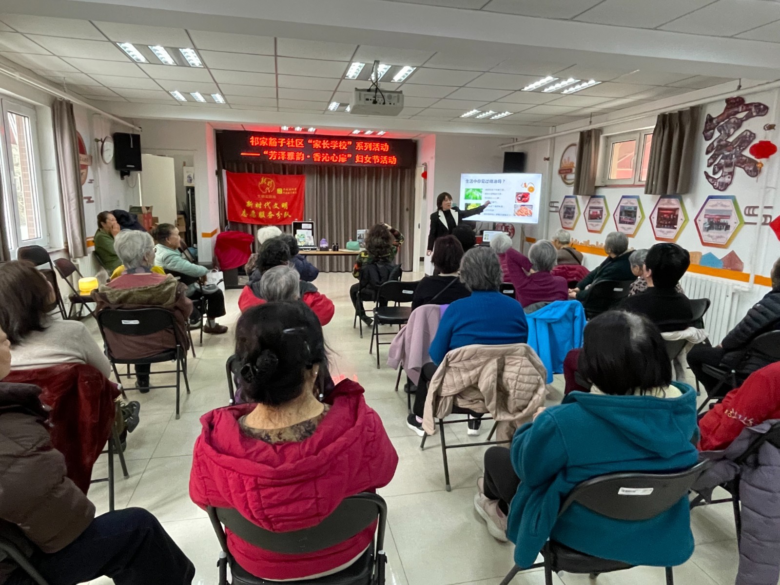 活动从探索生活中的精神与气息拉开帷幕。首先,专业芳香讲师为在场的女性朋友们带来了一场精彩的精油基础知识讲解。讲师从精油的基本概念出发,详细介绍了精油的分类、功效以及安全使用注意事项。通过生动的讲解和实例演示,让居民们对精油有了更加全面和深入的了解,也激发了大家对精油文化的浓厚兴趣。