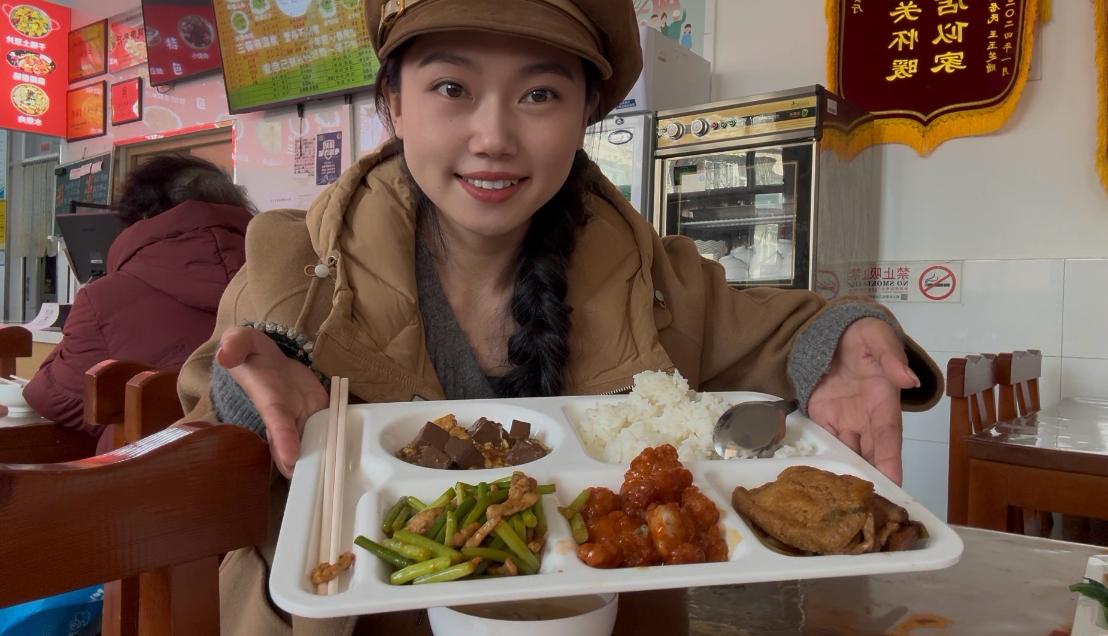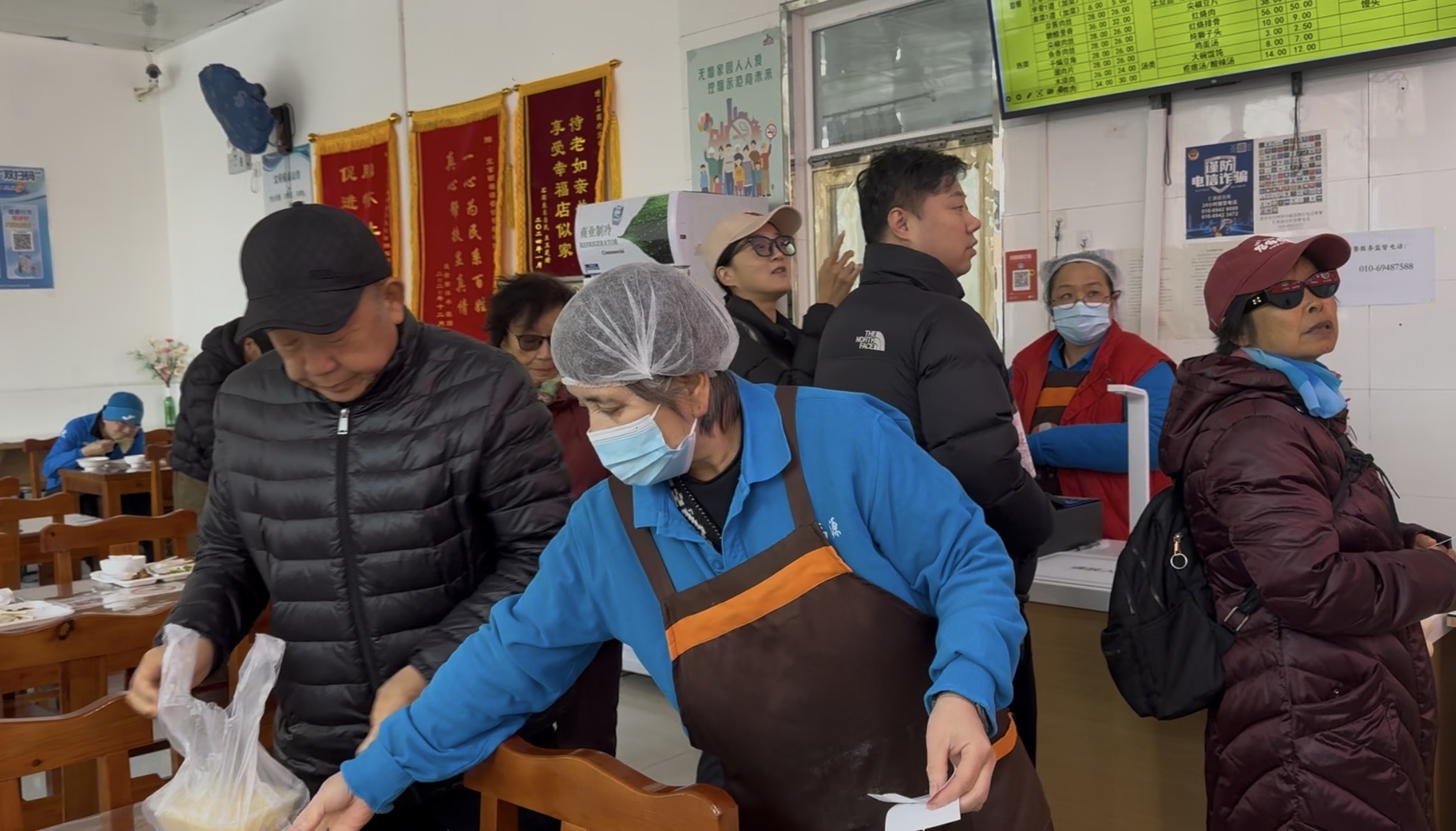 陈阿姨:进这屋以后什么都甭看,你看看这卫生,你看看好不好?干净不干净?非常干净!你就说这服务人员特别和气,就跟到家一样,面带微笑。这个窝头、豆包都是咱过去家里边做的那种味道,非常卫生,非常好吃,我特别喜欢!