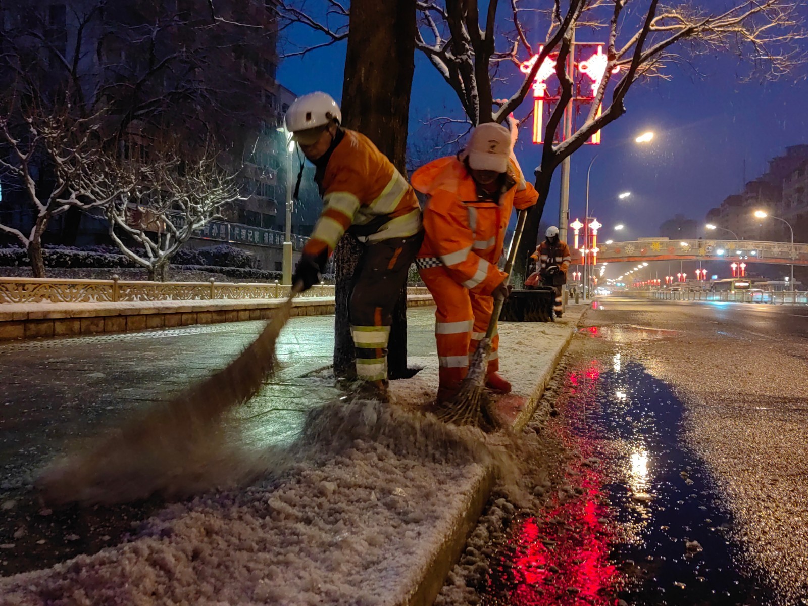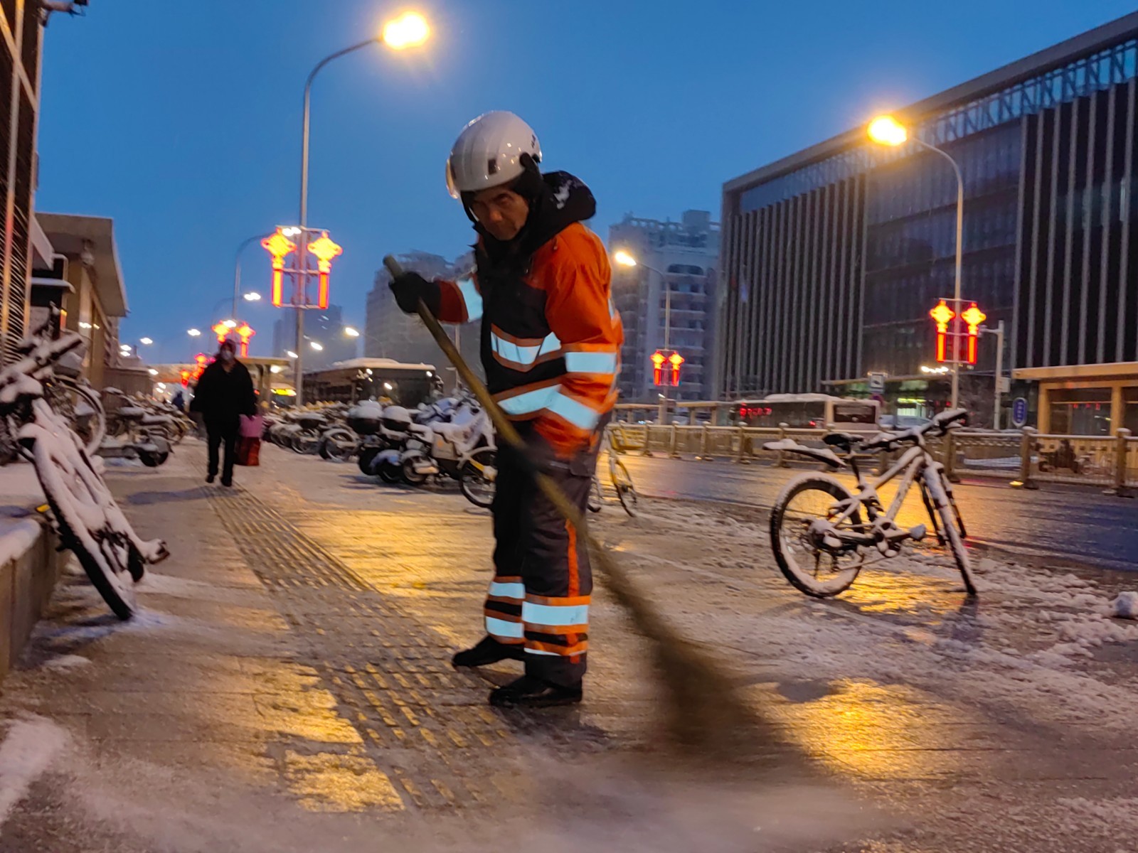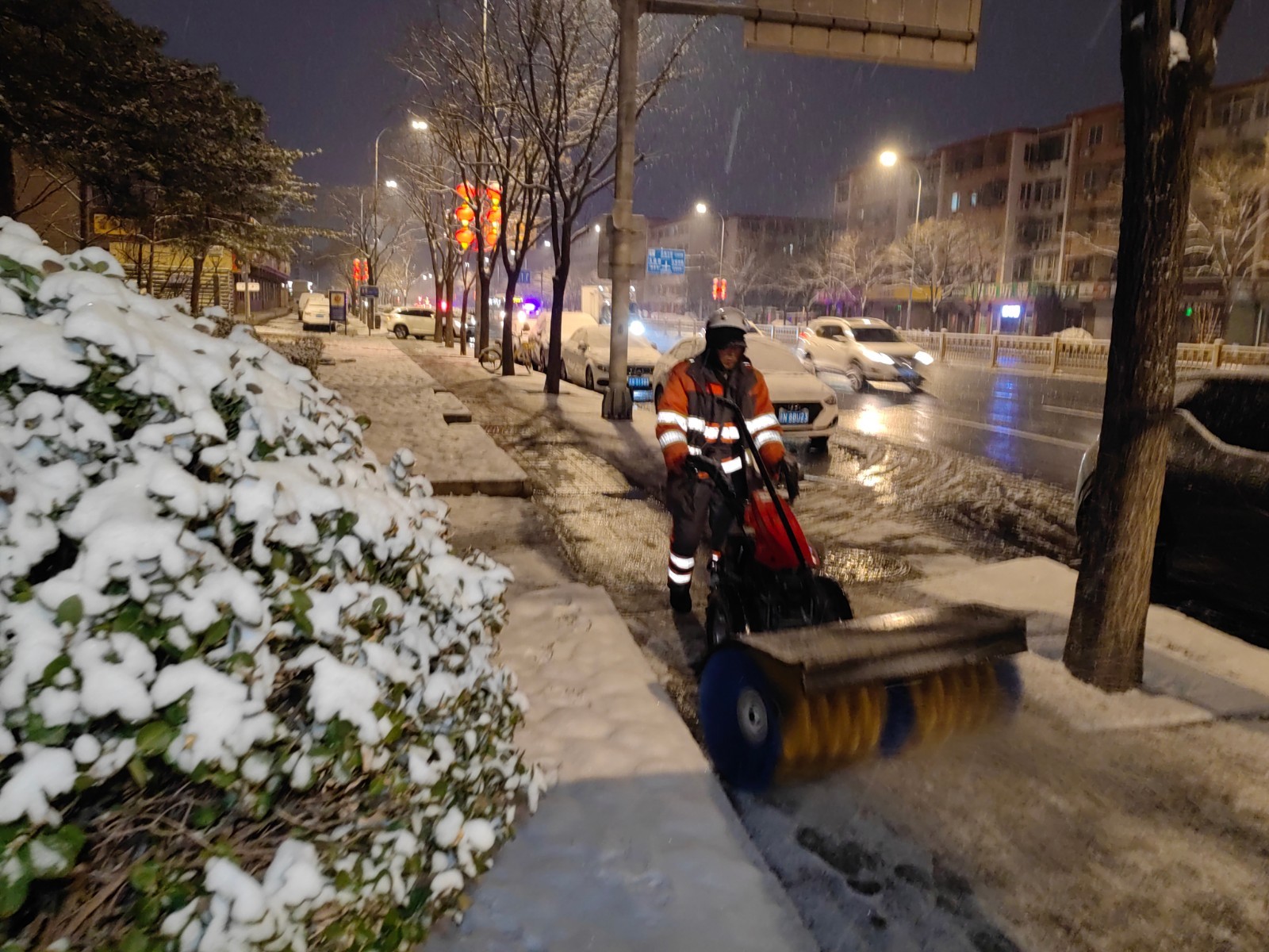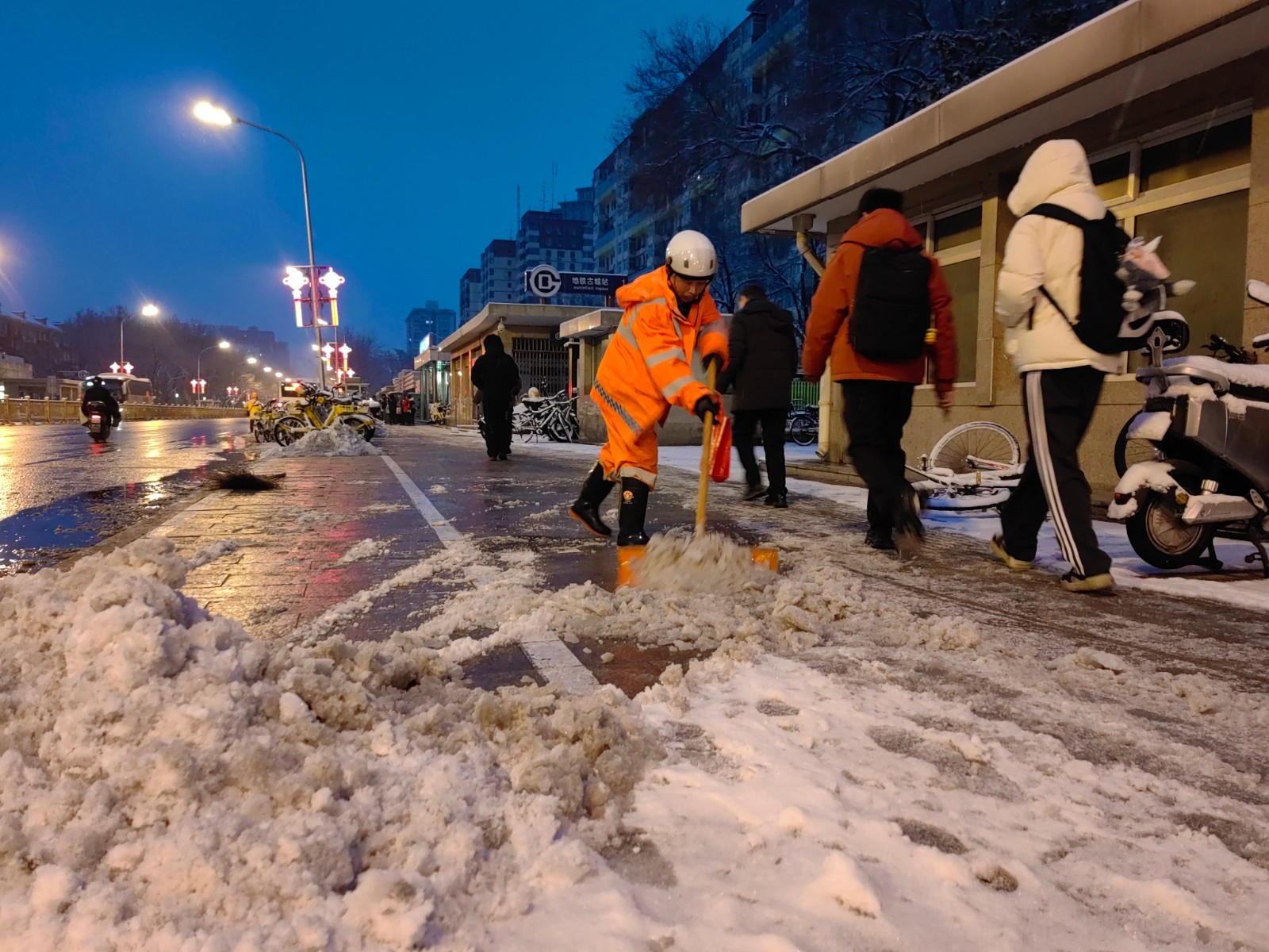 以雪为令,闻雪而动。从3月4日起,石景山区的环卫工人24小时全员在岗,持续不间断开展扫雪作业。采取“机械+人工”的作业方式和“专业力量+社会动员”的工作模式扫雪铲冰,重点聚焦医、学、景、商周边区域及城市交通主干线,各背街小巷至少开辟出一条1米宽的通行通道,确保市民正常出行。