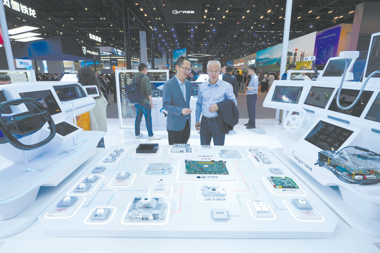 与此同时,在细分赛道,一批单项冠军企业正以技术突破改写全球格局。“国外的汽车芯片产业链经过与国际大厂数十年的合作,已经将配套市场发展得十分成熟,我们中国的车用芯片想要突破垄断,就必须成为单项领域的冠军”,在中国汽车芯片联盟的展台,瑞发科半导体负责人对《环球时报》记者表示,旗下生产的多款HSMT SerDes芯片出货量突破3000万片,短短一年多占据国内一成份额。