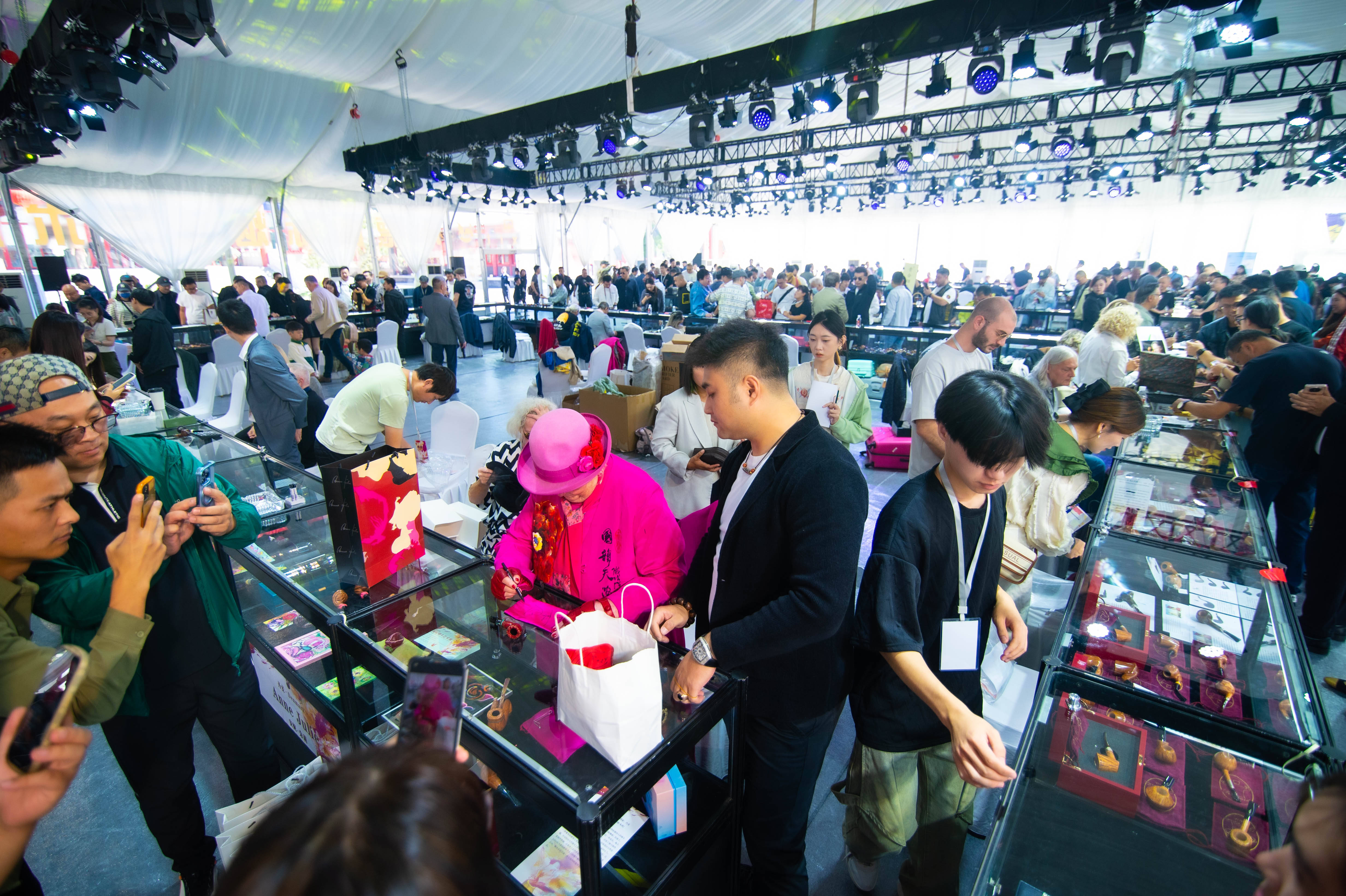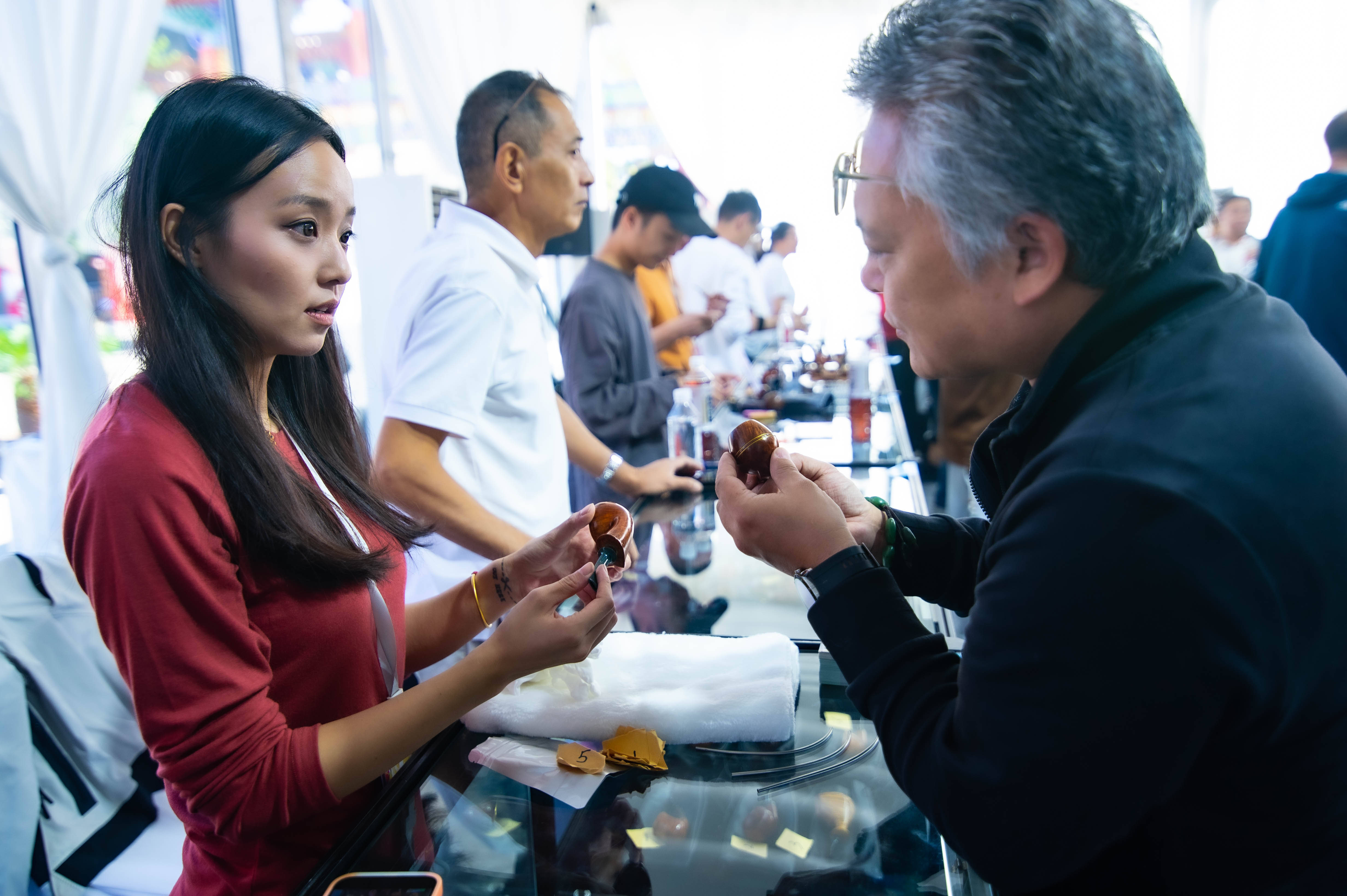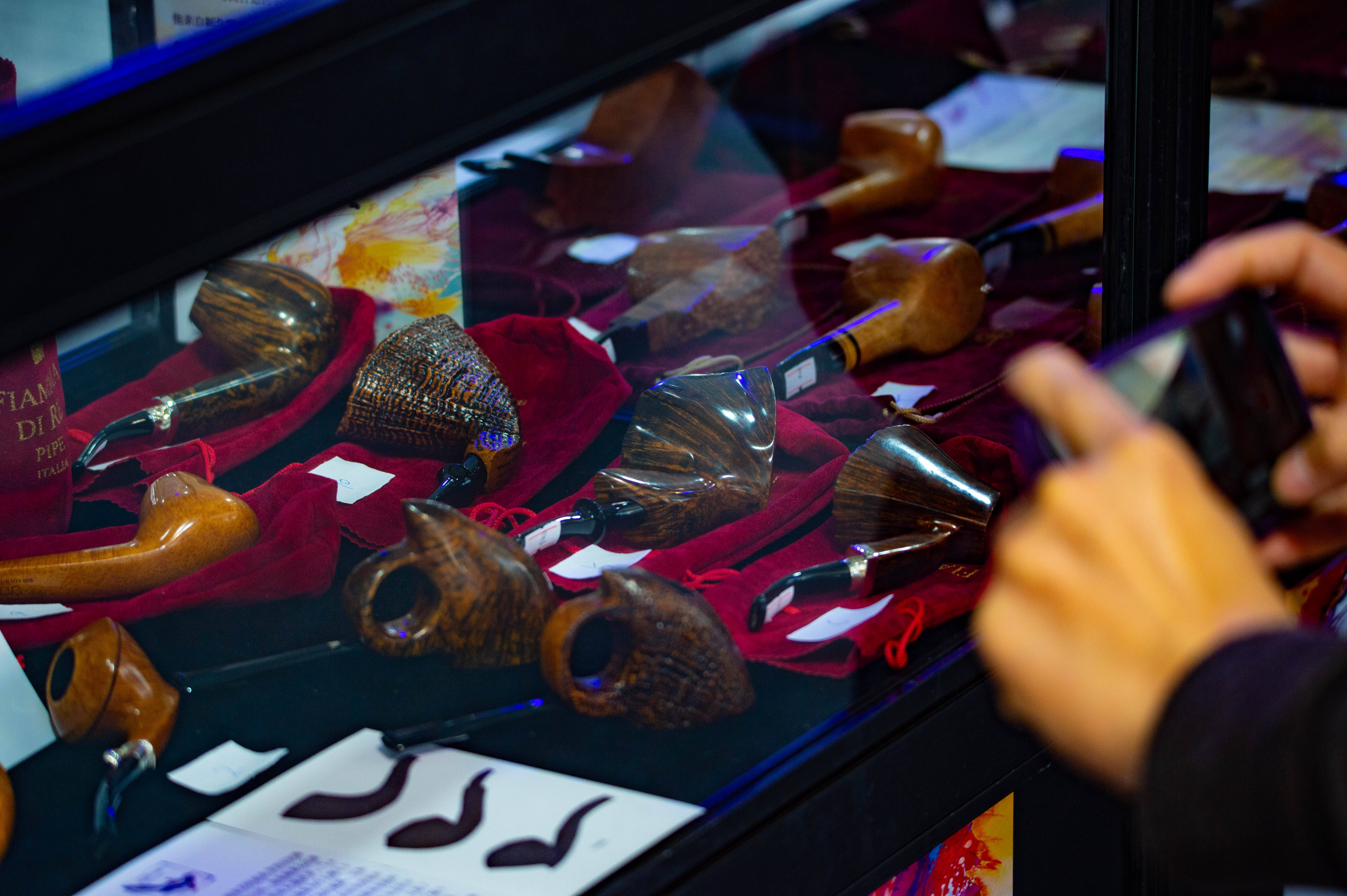 本届烟斗展中,各种活动应接不暇。包括烟斗展纪念册作品评选、无声拍卖、第八届鼎盛杯烟斗慢抽比赛、历届烟斗展回顾之旅酒会等多项活动为展会增添活力,无声拍卖环节则是本次展会的一大亮点。在静谧的氛围中,竞拍者通过细心观察与比对,挑选出自己心仪的烟斗作品进行竞拍。斗展纪念册作品评选环节国内外知名烟斗师以专业的眼光和严谨的态度,对参展作品进行细致评选。