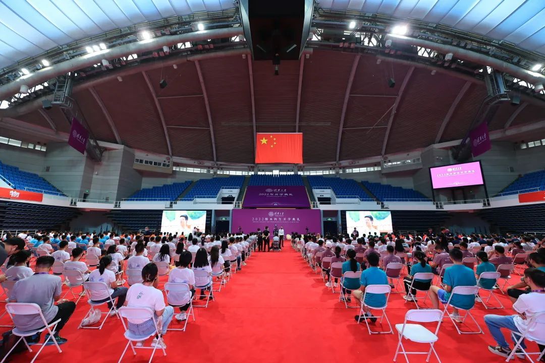 微雨氤氲,水木清华。8月18日上午9时,清华大学2022级本科生新生开学典礼举行。3700余名本科生新生将在百年清华园中开启新的人生旅程。佩戴上清华大学徽章,这些来自五湖四海的同学少年,将与历史上众多灿若星河的名字一起,共享“清华人”这一承载着使命与荣光的称号,传承着“自强不息、厚德载物”的清华校训,共同承担起国家与时代的责任。
