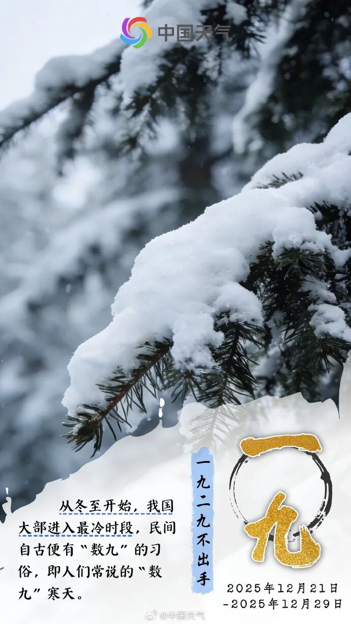 今天冬至节气开启,一年一度的“数九”也正式开始了。大家都听过“一九二九不出手,三九四九冰上走”的数九歌,但你知道究竟什么是“数九”吗?在每个“九”期间又要注意什么?