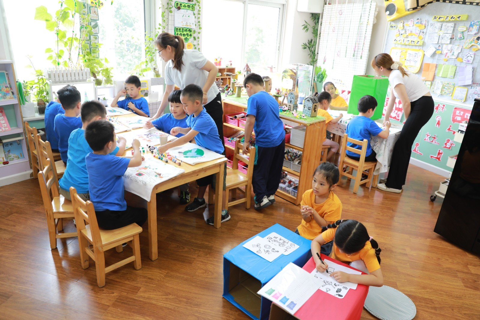 小朋友用手中的画笔描绘“垃圾分类从我做起”、“垃圾分类清洁地球”等画作,小小环保袋承载着孩子们天马行空的想象。