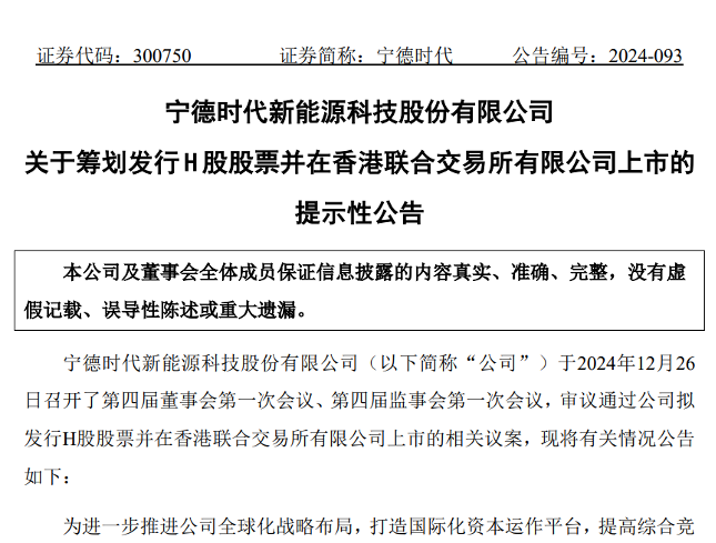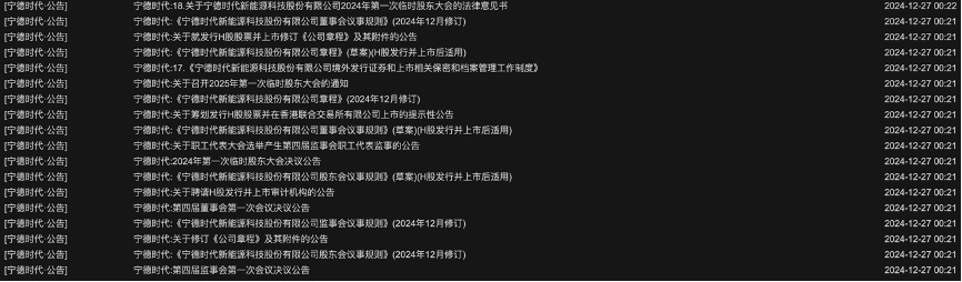 2024年12月26日晚间,宁德时代一口气发布了18则公告,这些公告几乎都围绕一件事:赴港上市!