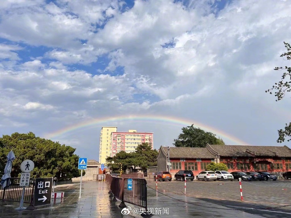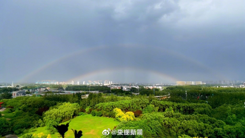 6月11日傍晚,一阵急雨过后,北京天空架起双彩虹。两道绚丽的彩虹宛若七色彩带,横亘在湛蓝的天空中,梦幻又美好!分享初夏的双倍幸运,愿你好运连连,所求皆如愿!