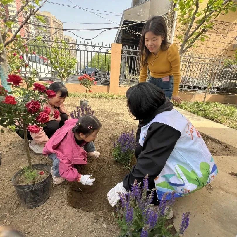 4月下旬,20余位爱花的志愿者齐聚一堂,与奥林匹克中心绿化养护部的专业“种花高手”一同在南区13号楼西侧种植了近百株花苗。种植品种包括月季花、绣球花、鼠尾草、鸢尾、矾根、地被菊等,色彩斑斓、花团锦簇。种植过程中,大家一边请教现场老师,一边相互交流、指导,体验着种植的快乐。种植后,居民们路过此处纷纷打卡拍照,记录美好。