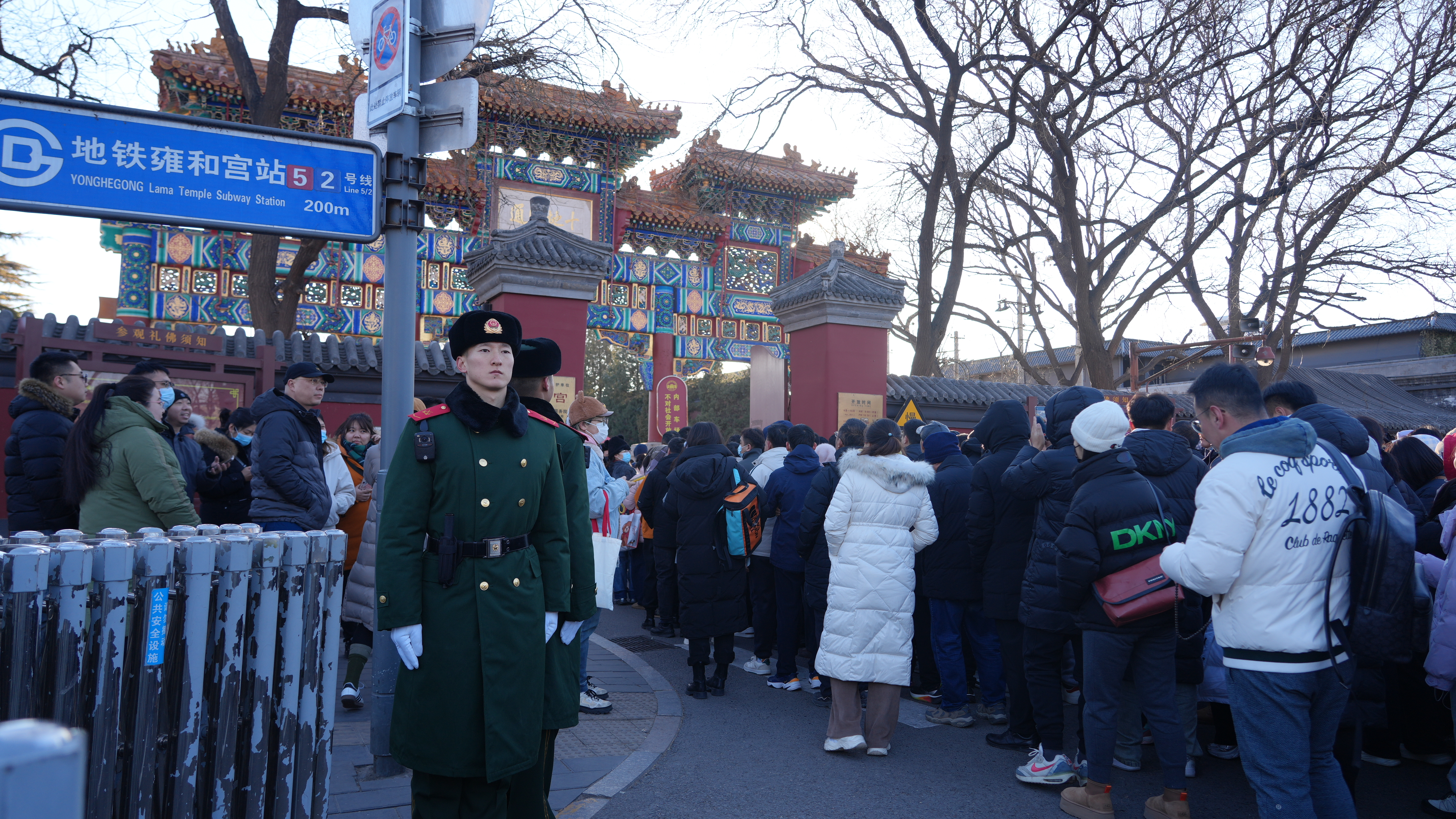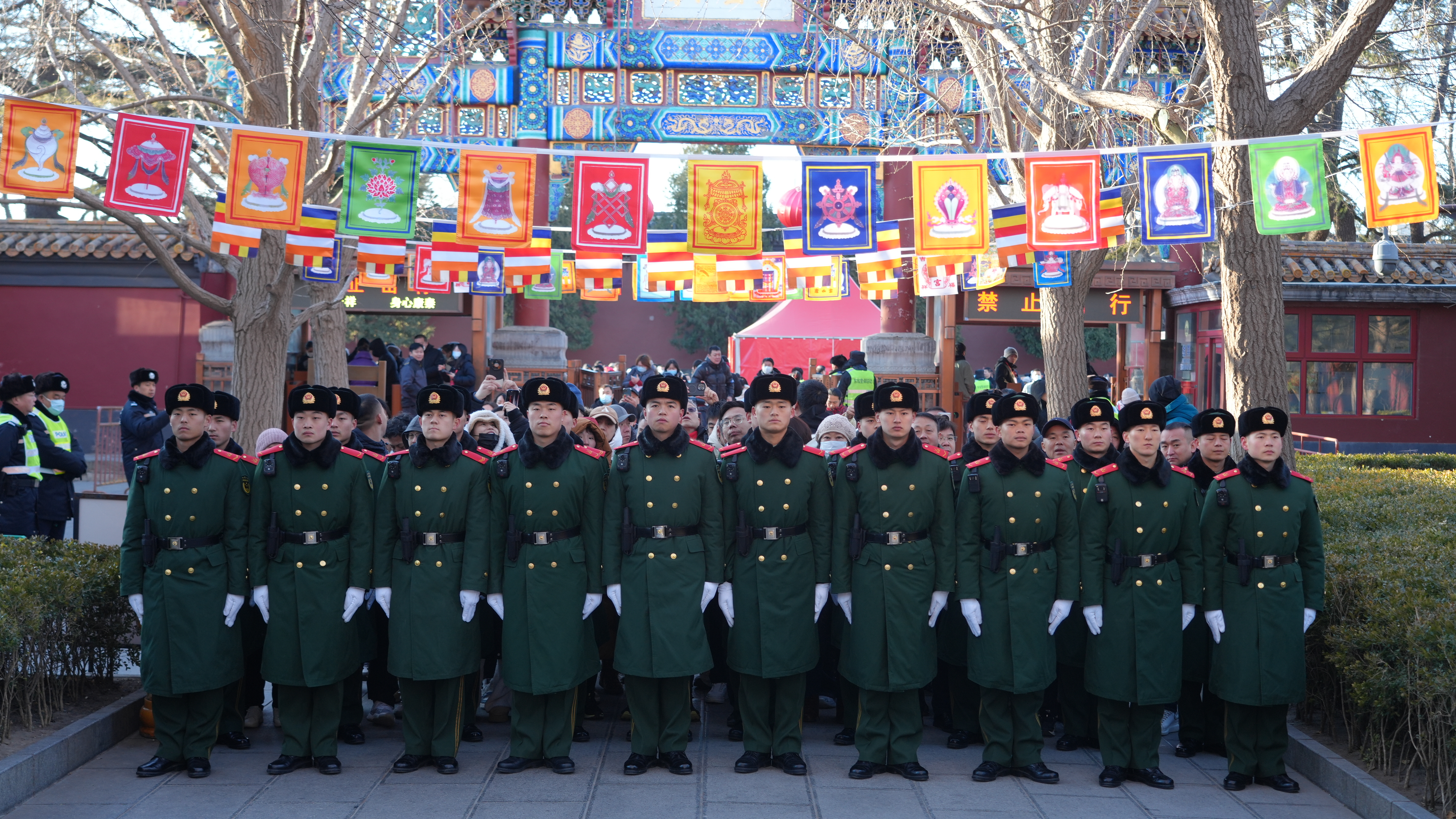 2月12日,武警北京总队某支队官兵整装待发,和往年一样到雍和宫执勤,维护上香秩序,默默守护着这片热闹与祥和。