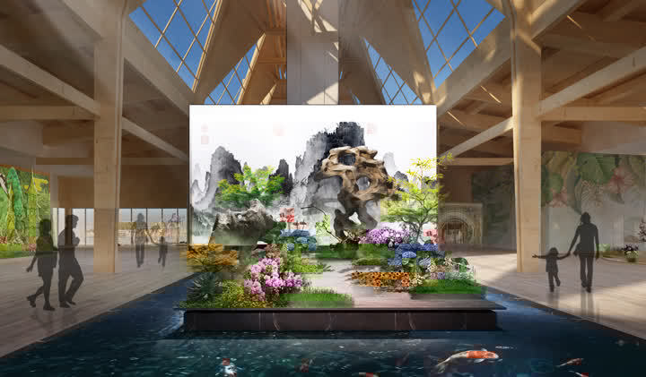 仪征世园会如何体现扬州元素?这是主办方从规划之初就开始思考重要命题。刘润东表示,中国馆设计上遵循扬派园艺手法,将中国名花名草、山水小品、工笔花鸟、剪纸篆刻等扬州文化元素结合其中,呈现一幅大气幽雅的绿色画卷。