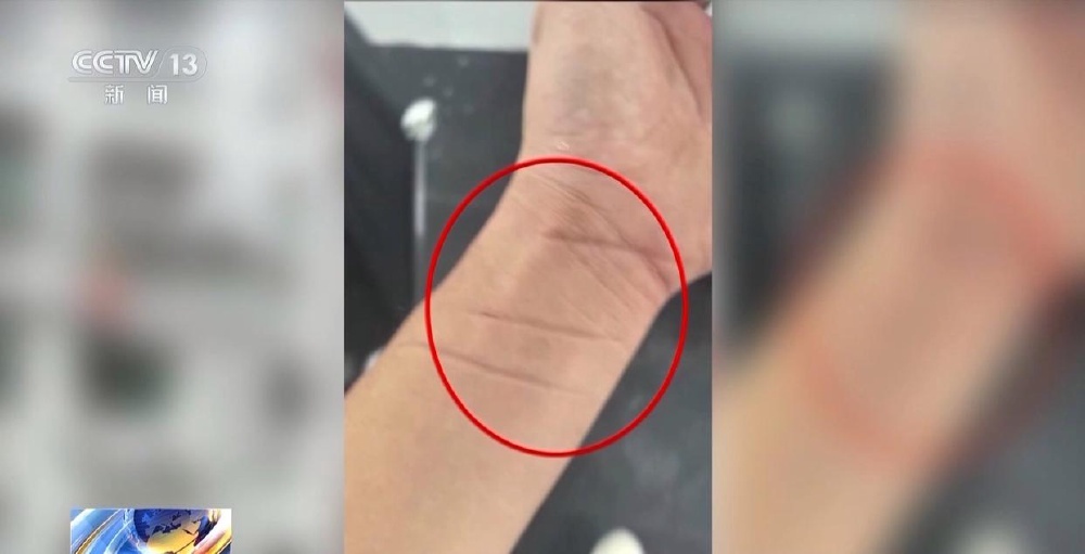因长时间用力抓握窗沿,黄飞的左手手腕被勒出了三道清晰的红痕。