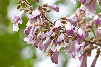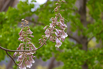 泡桐花形如喇叭,盛开时花势烂漫又不失素雅。