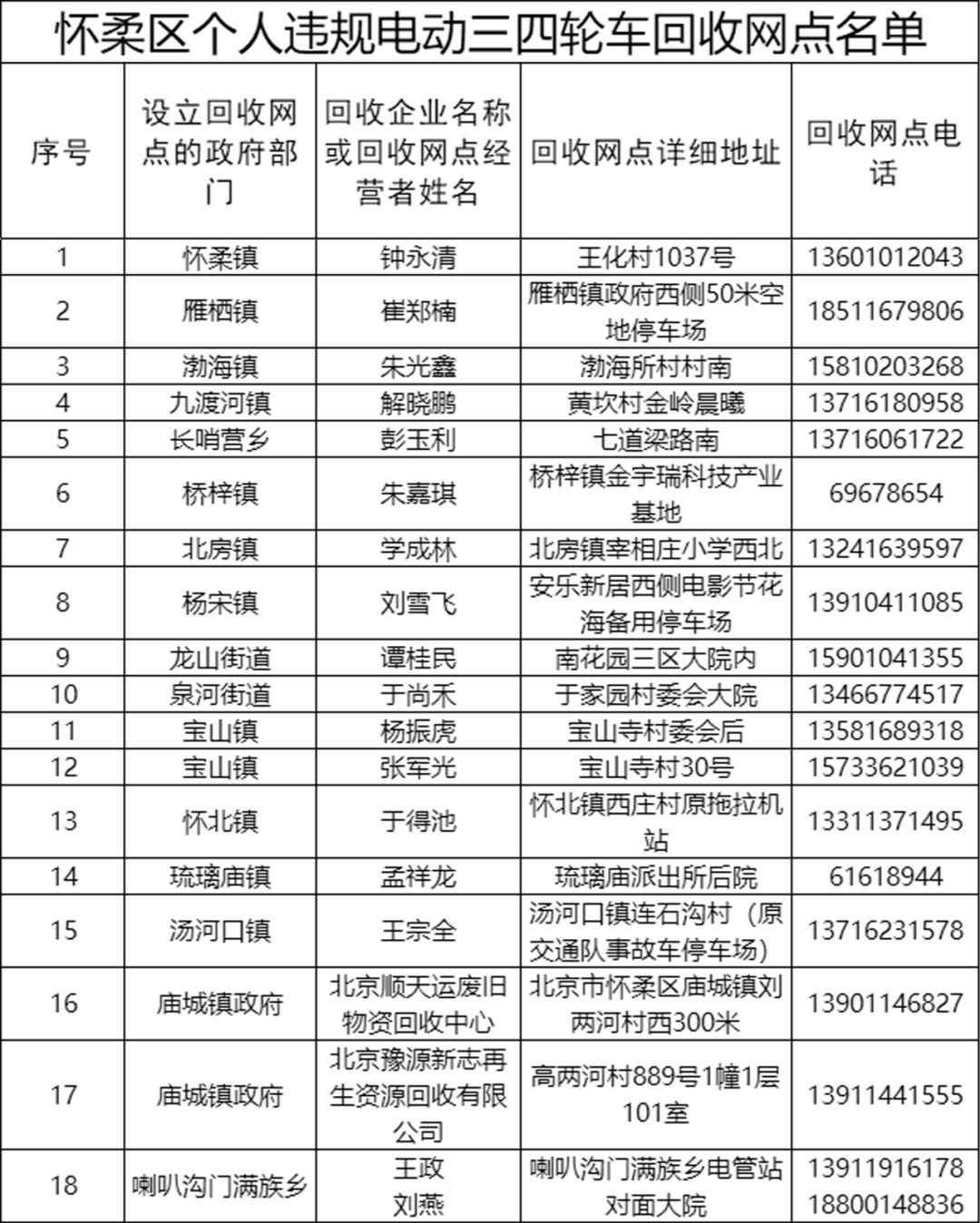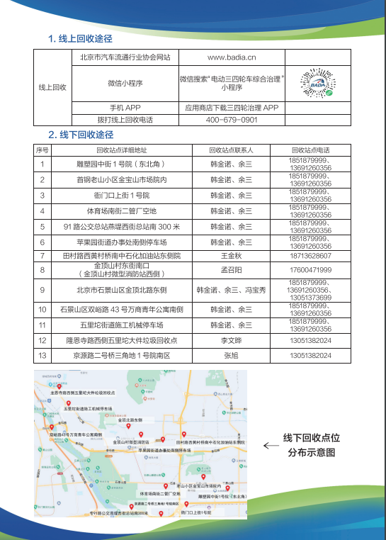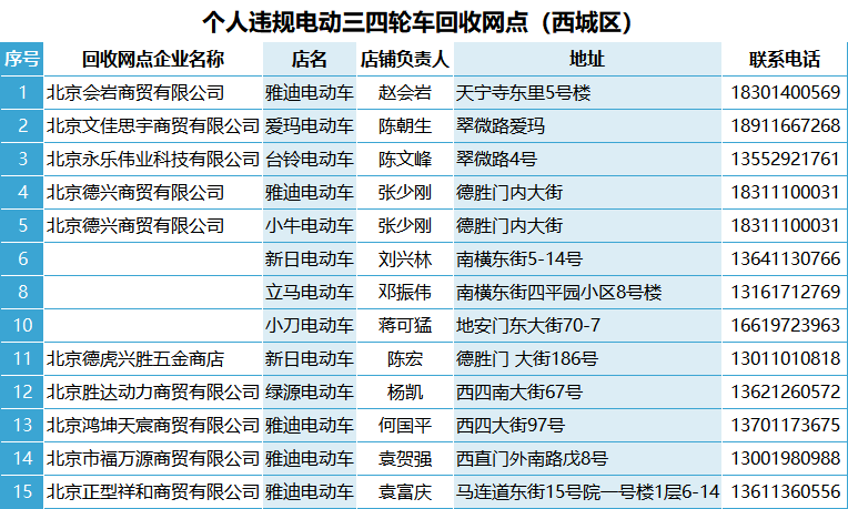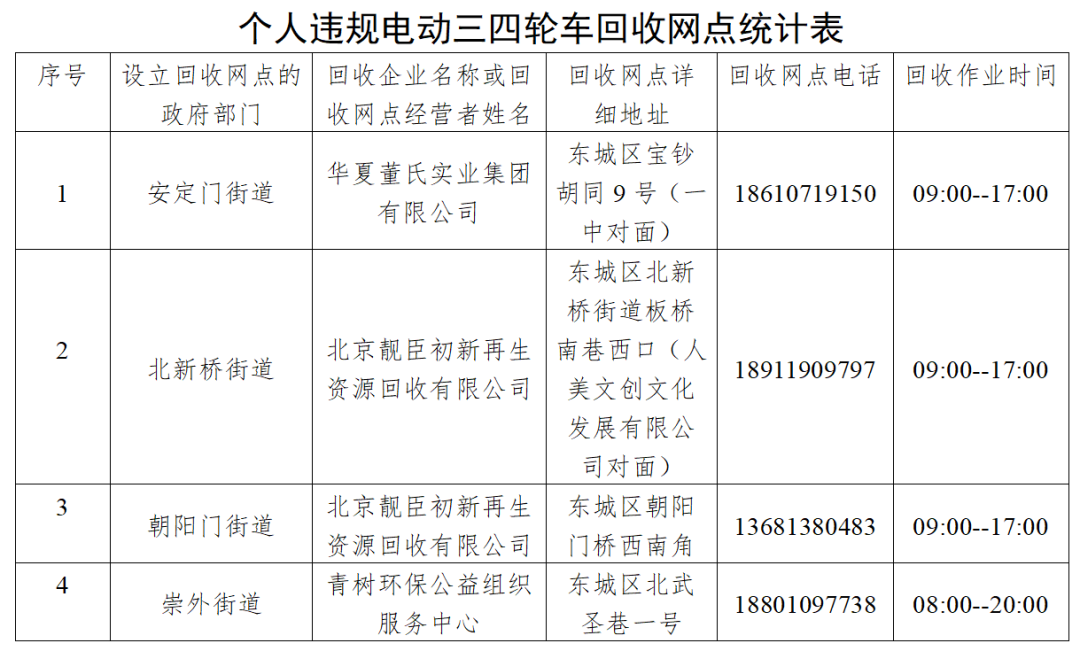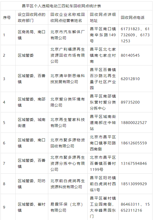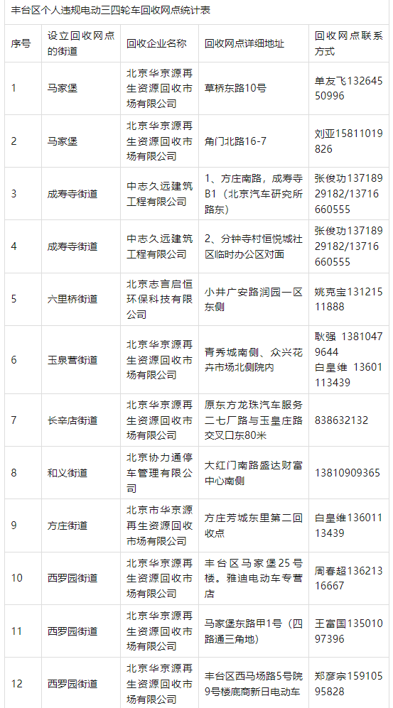 目前,北京市多区发布违规电动三四轮车的线下回收点名单。一文汇总——