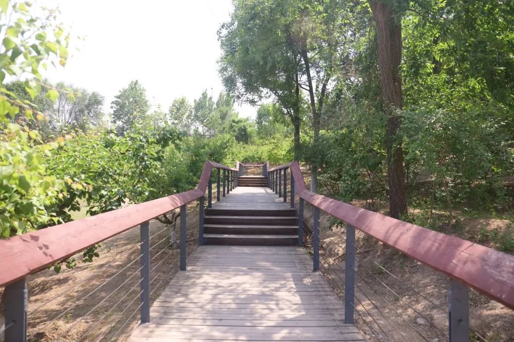 在打卡过产业园后,沿昌顺路向西骑行,可路过昌平新城滨河森林公园。您可以在木栈道上走走,赏花听鸟,短暂休息一下。