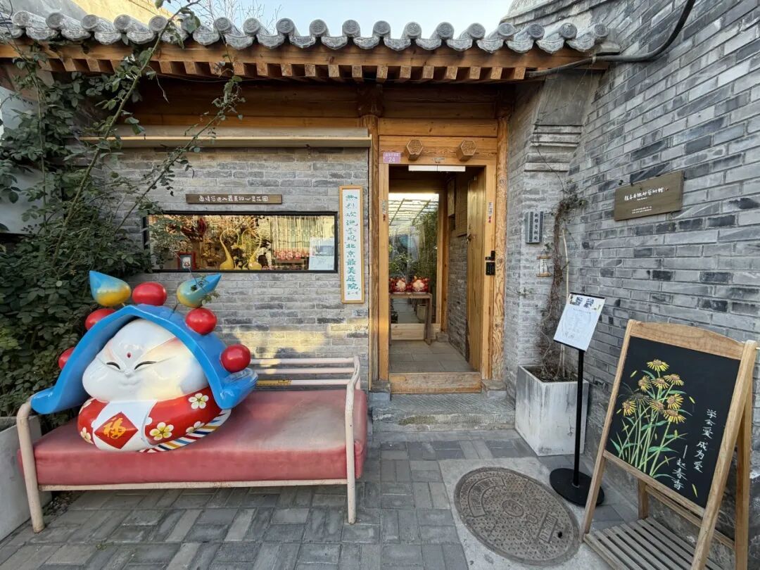 这是一处设计别出心裁的胡同庭院,满院都是软陶艺术品,细节精致的兔爷系列充满老北京特色,令人印象深刻。小院儿里还能遇到可爱的喵星人。