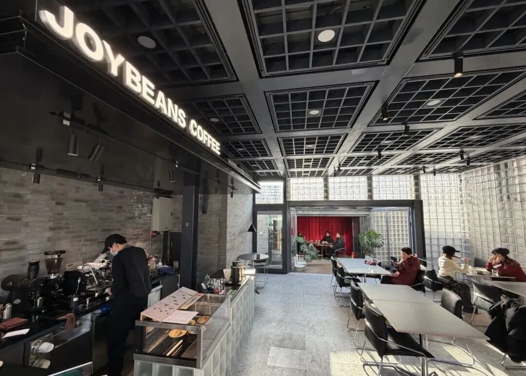 由大杂院改造的咖啡空间,一年四季都有应季的饮品和甜品提供。室内灰色系的装修风格,搭配透着阳光的玻璃砖墙,大红绒布围合的小舞台,现代中又透出天桥的演艺风。图书区、露台、后院,宽敞的空间在胡同里实属难得。