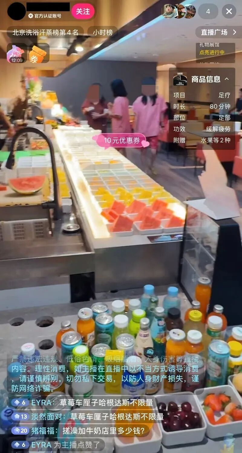 某汤泉账号进行直播消费者进入画面/记者打码处理