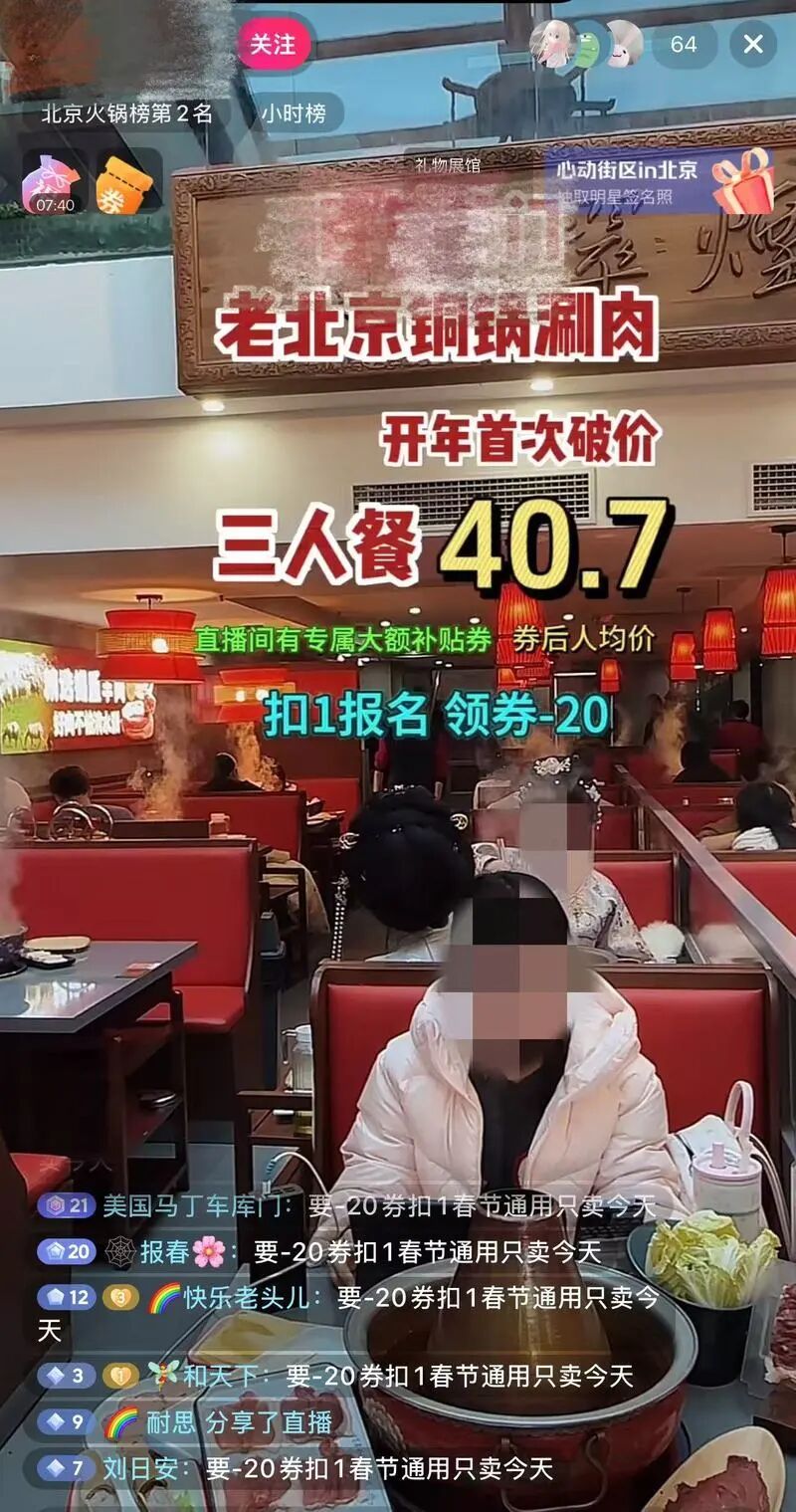 部分就餐顾客进入直播画面/记者打码处理