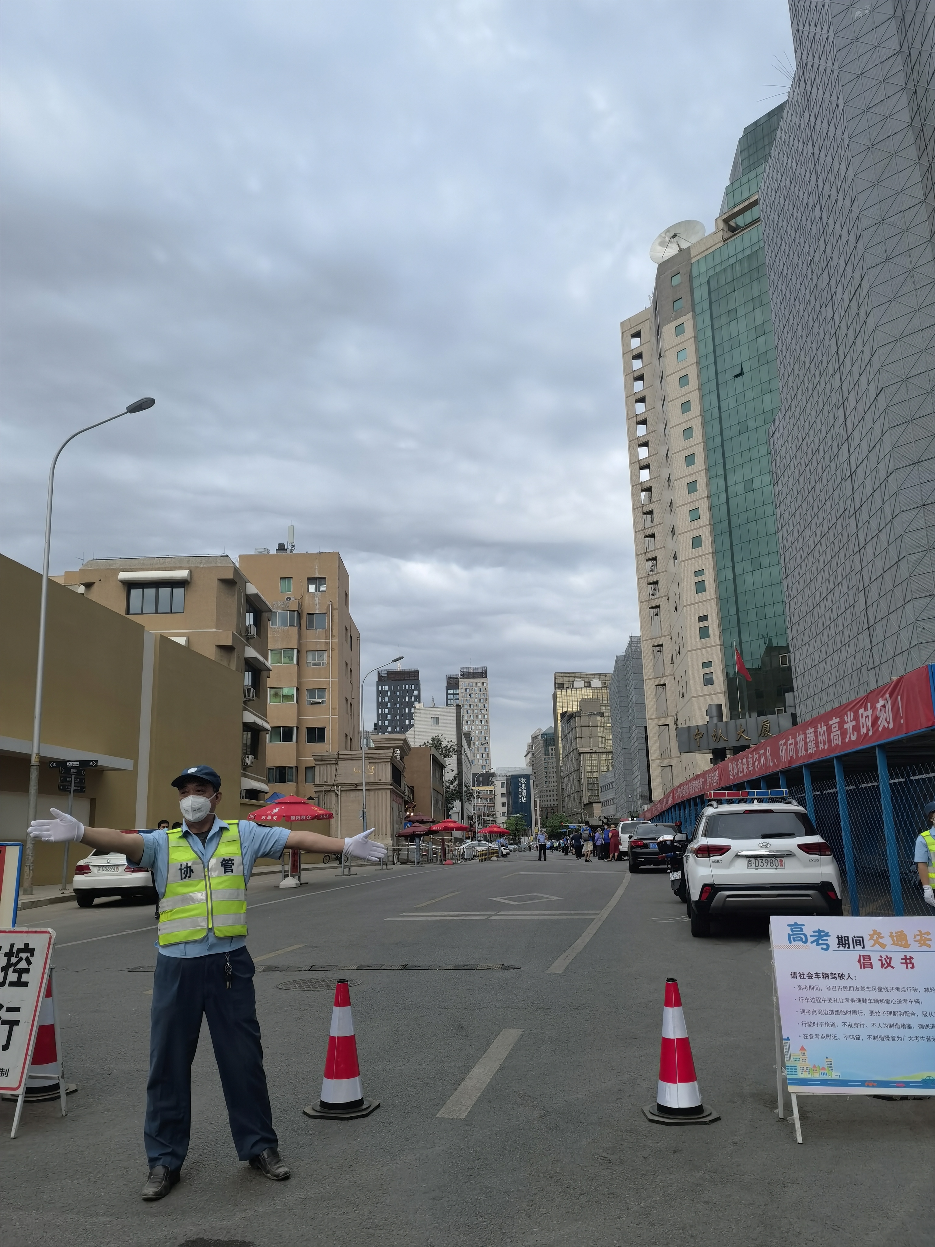 早晨7点,记者来到北京市陈经纶中学(以下简称 陈经纶中学)门口,作为常规考点,考生到场前,北京公安、交警、消防、朝外街道总工会等各部门已早早到场,各司其职,蓄力护航。