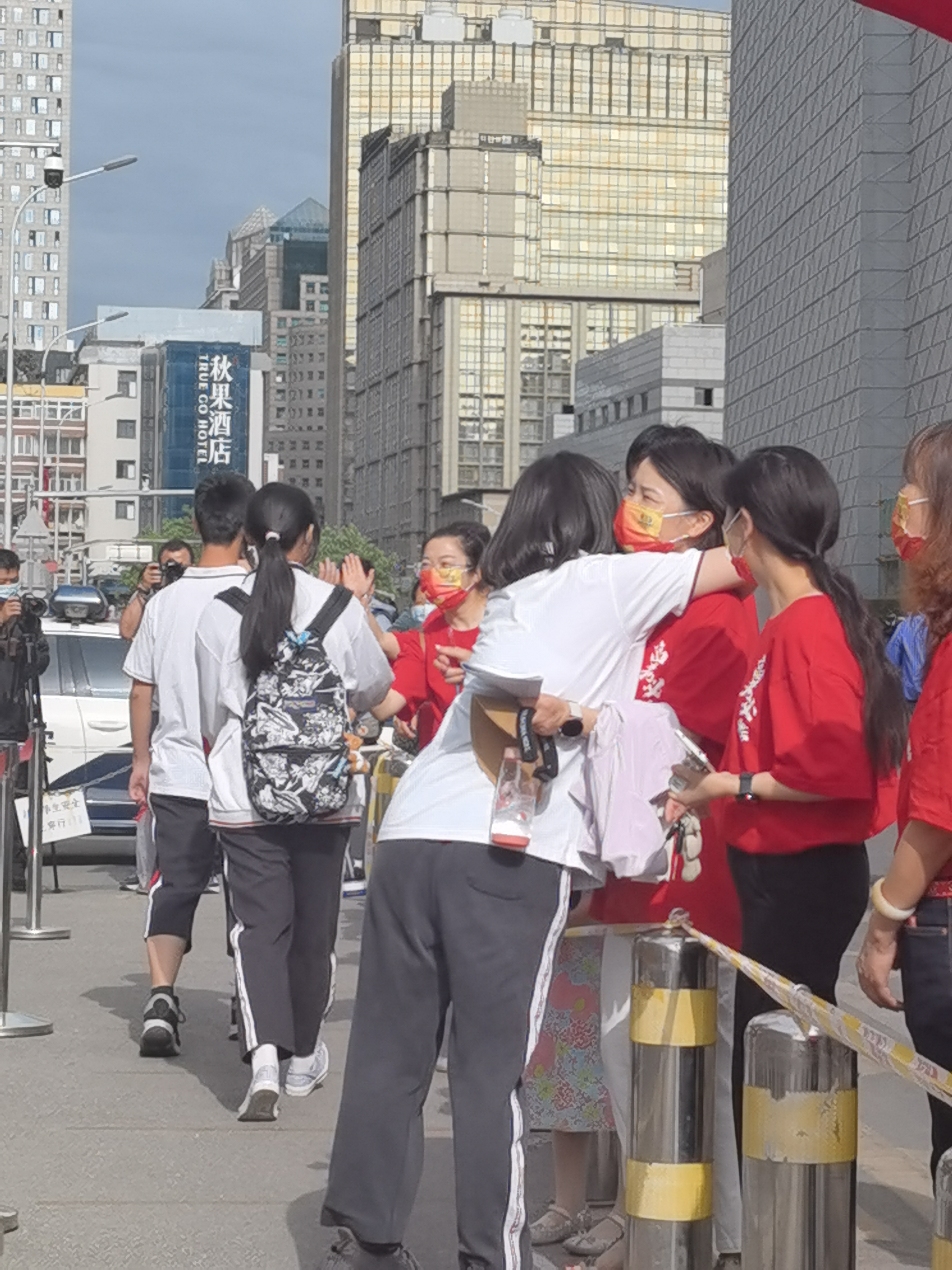 不少考生看到熟悉的老师十分激动,纷纷和老师们温暖拥抱。