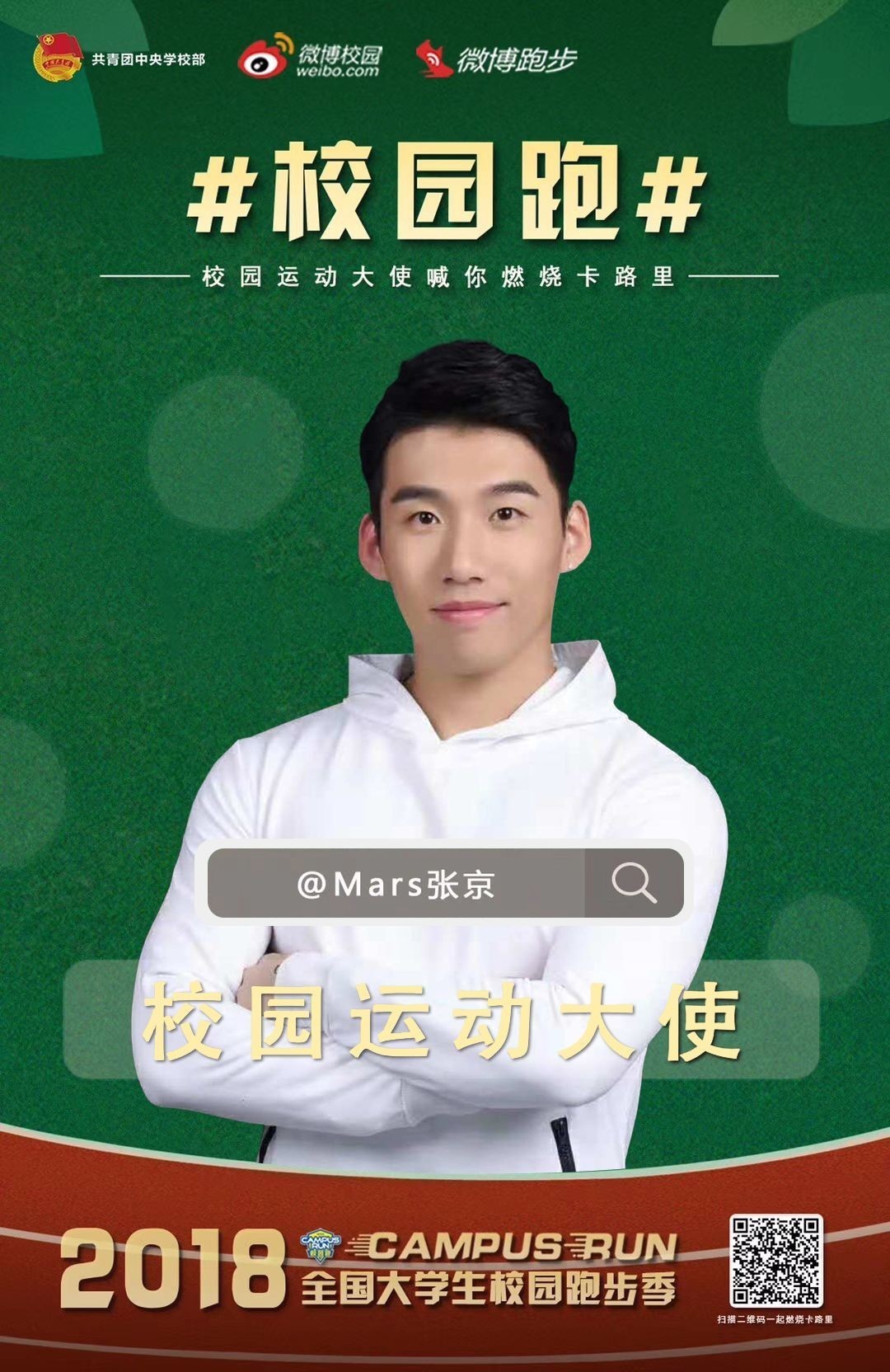 除了担任北京市全民健身宣传推广大使,共青团中央举办的校园跑运动项目,也邀请张京担任形象大使,在全国高校推广跑步等运动项目。作为专业运动员出身的张京,特别愿意用自身的经历与影响力,激励更多大学生群体积极参与跑步运动,同时学习科学的运动方式。