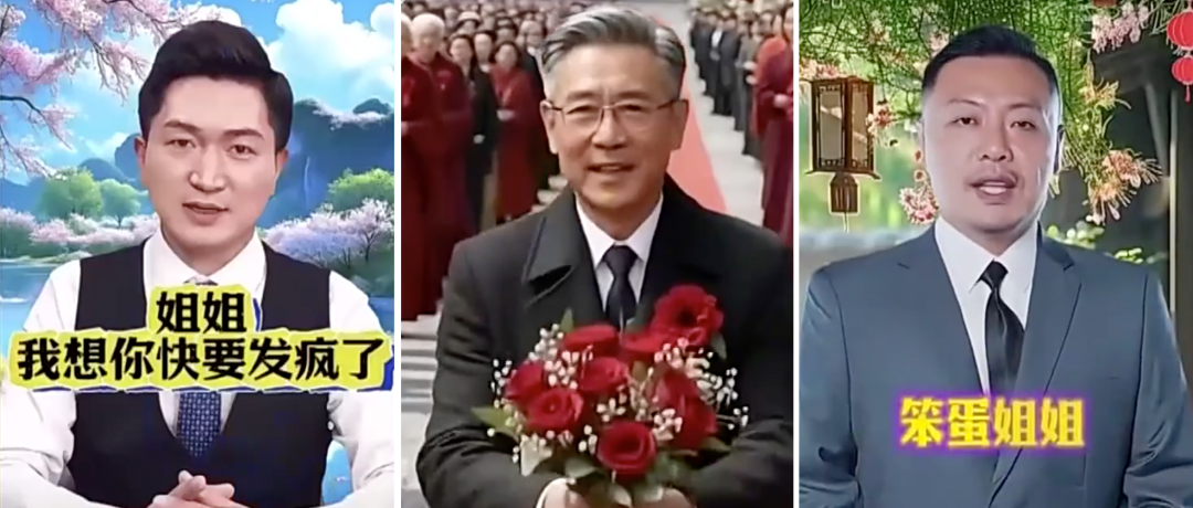 近期,短视频平台上出现了一批身着正装或制服的“AI霸总”,张口“姐姐”、闭口“想你”,嘘寒问暖甚至下跪求婚……