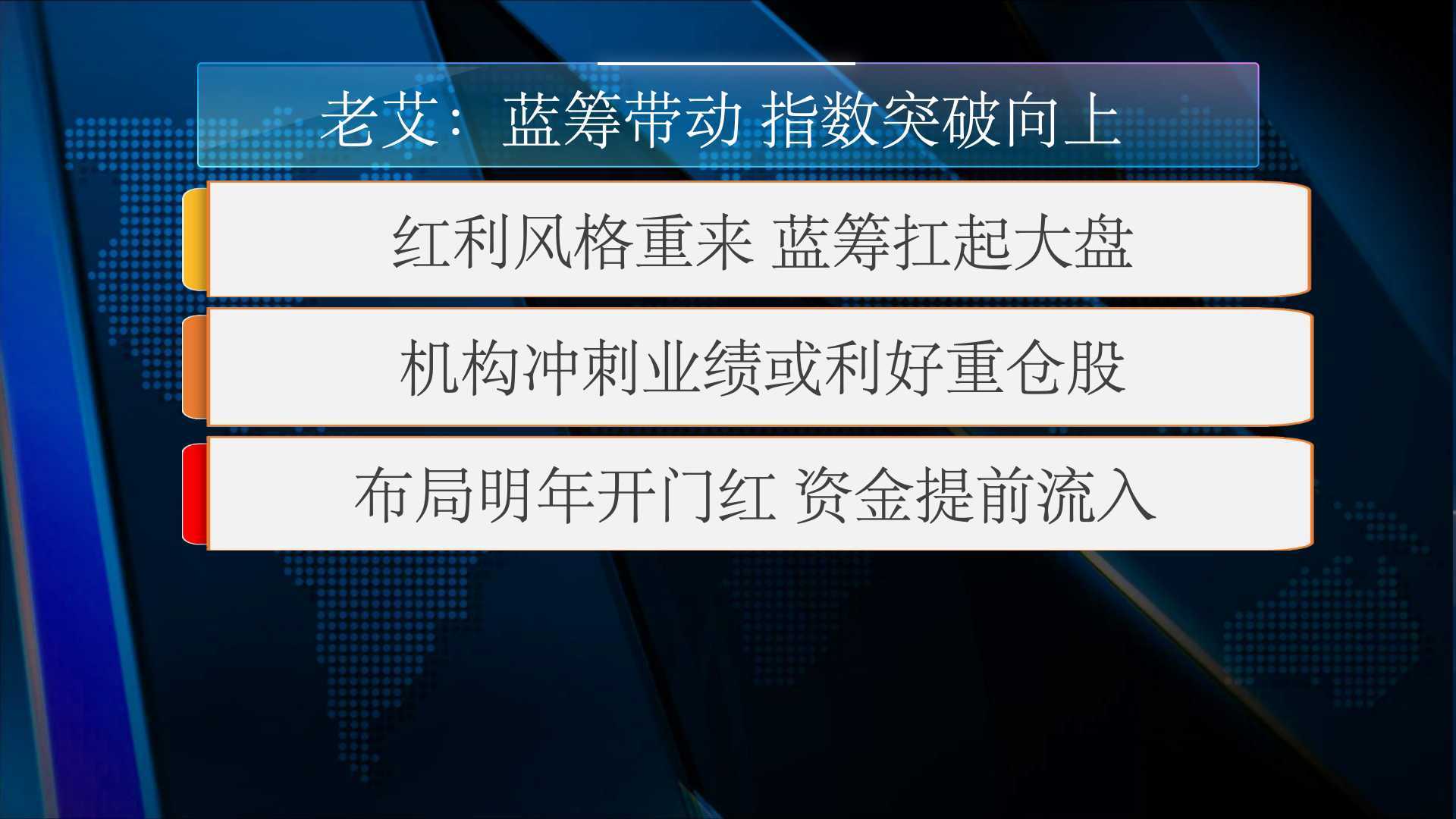另一位嘉宾老艾则认为蓝筹带动 指数突破向上