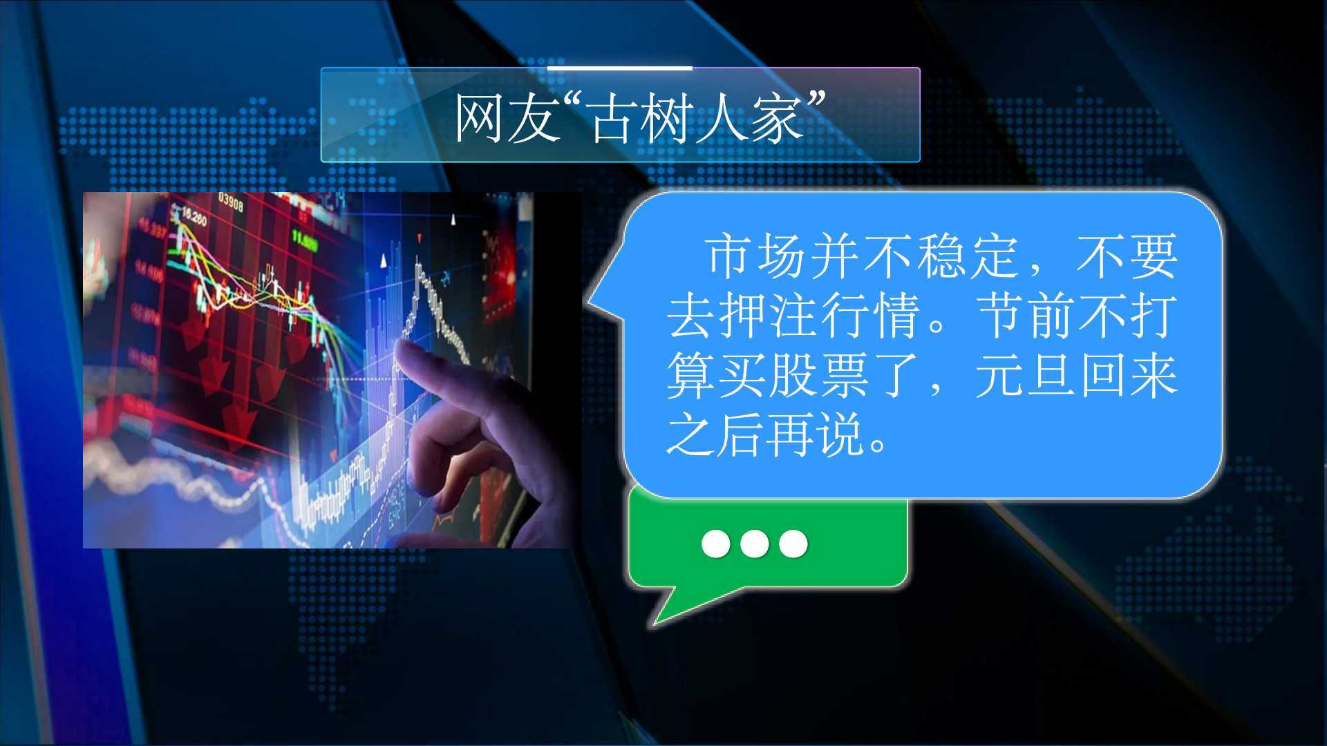 网友“古树人家”:市场并不稳定,不要去押注行情。节前不打算买股票了,元旦回来之后再说。