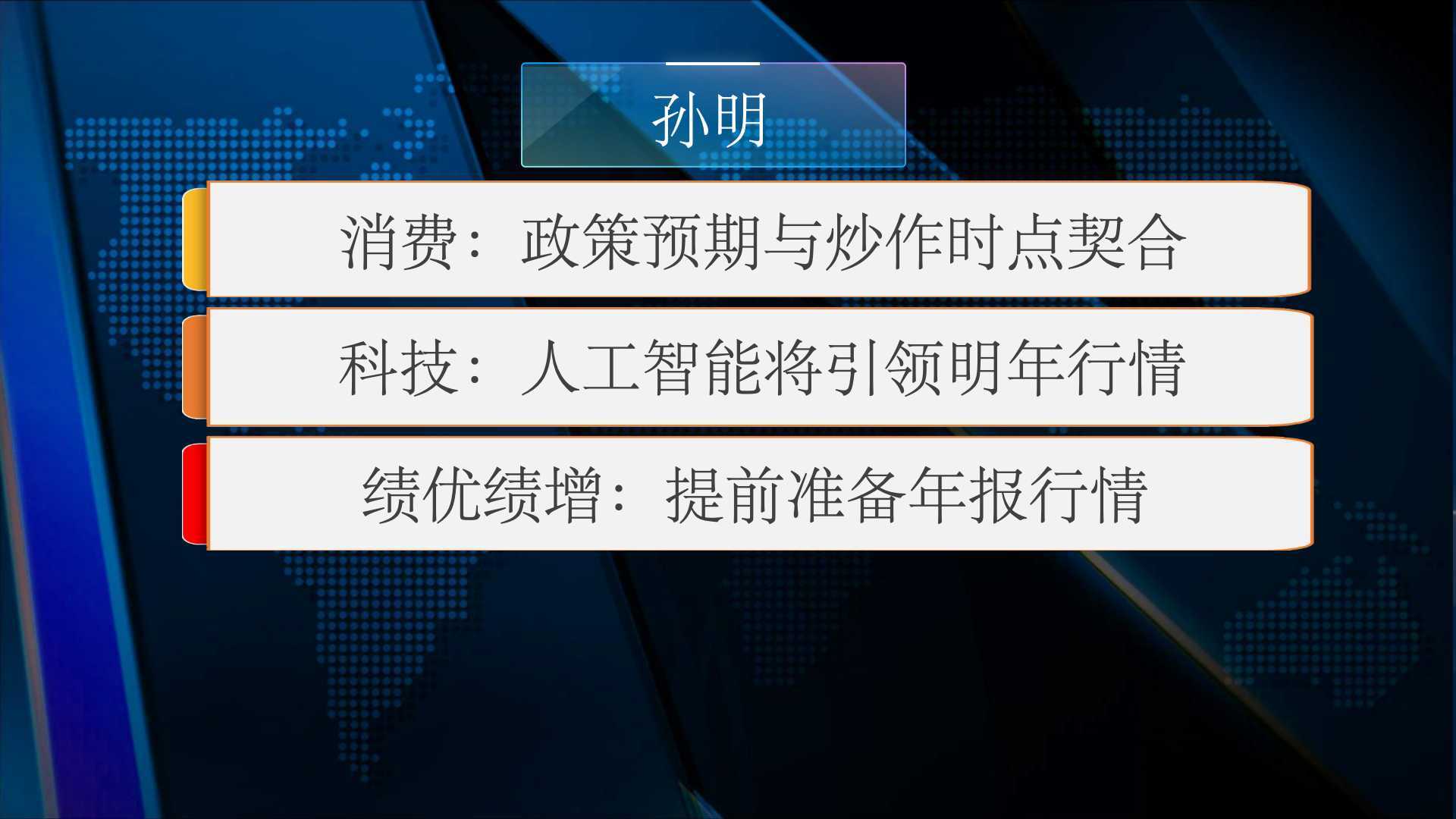 现场嘉宾孙明认为节前哪些板块值得布局,有以下几方面: